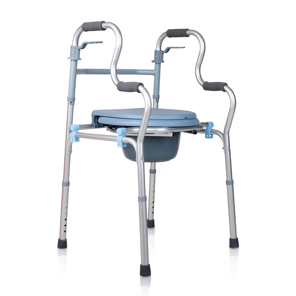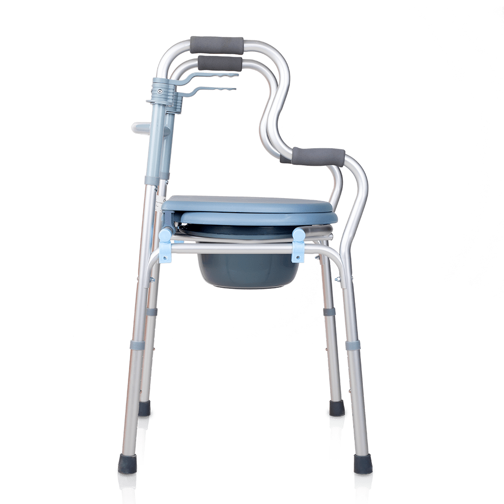 The 4100 toilet aid has a simple and quick folding system that allows you to store your commode chair in any corner.