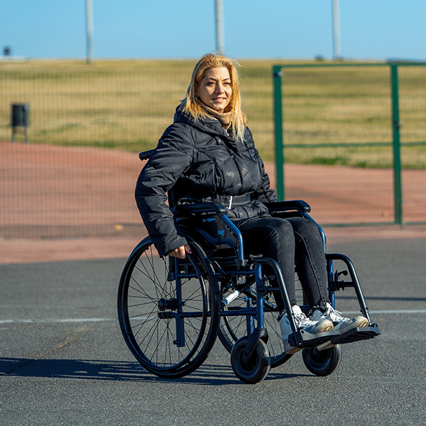 - Model Saby-21: Large 600 mm rear wheels for self-propulsion.