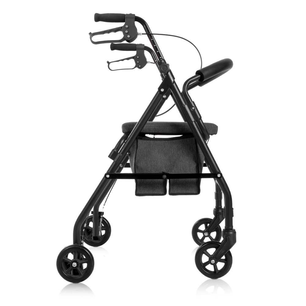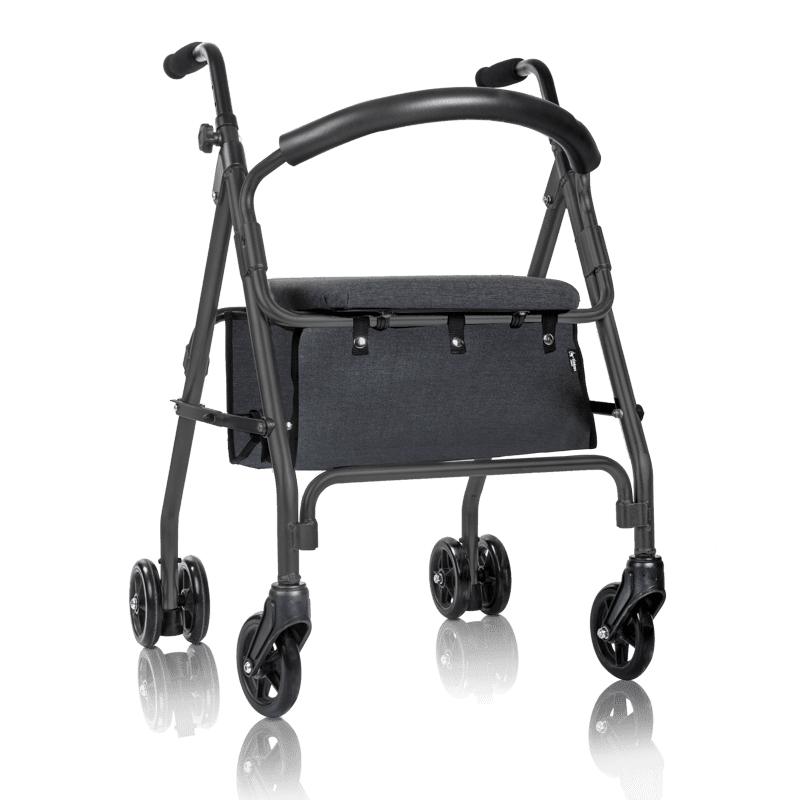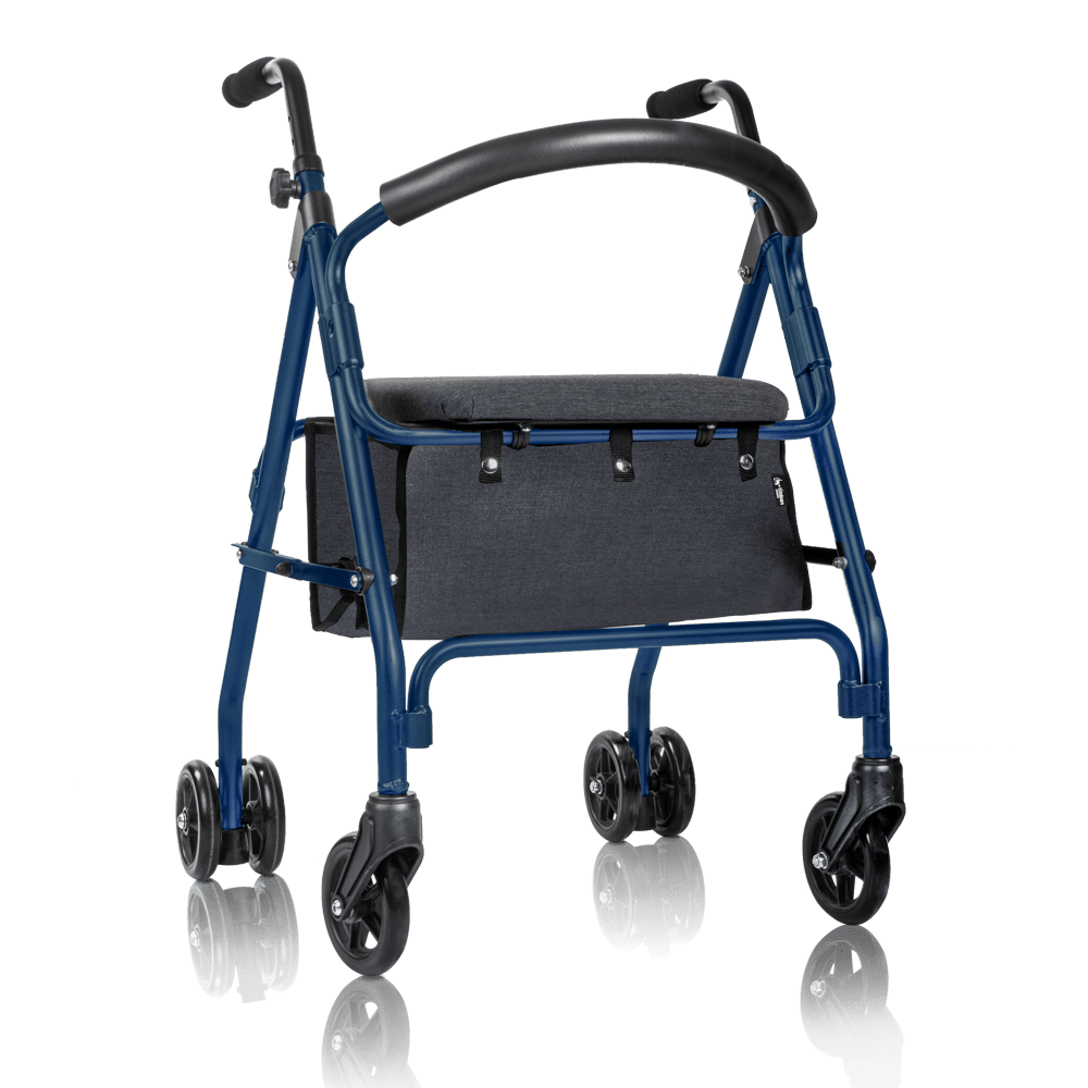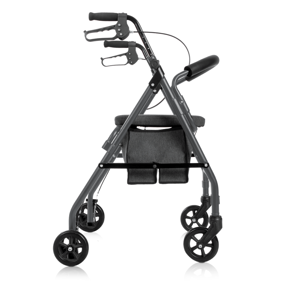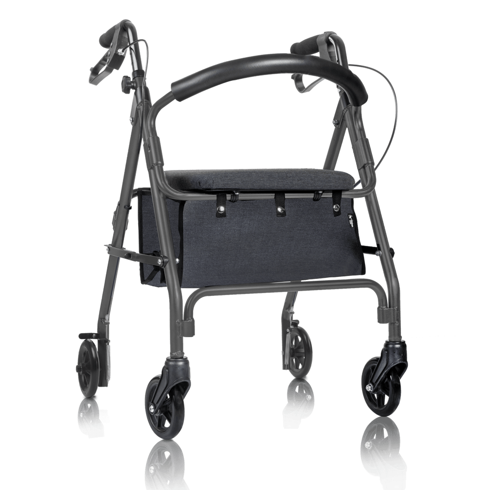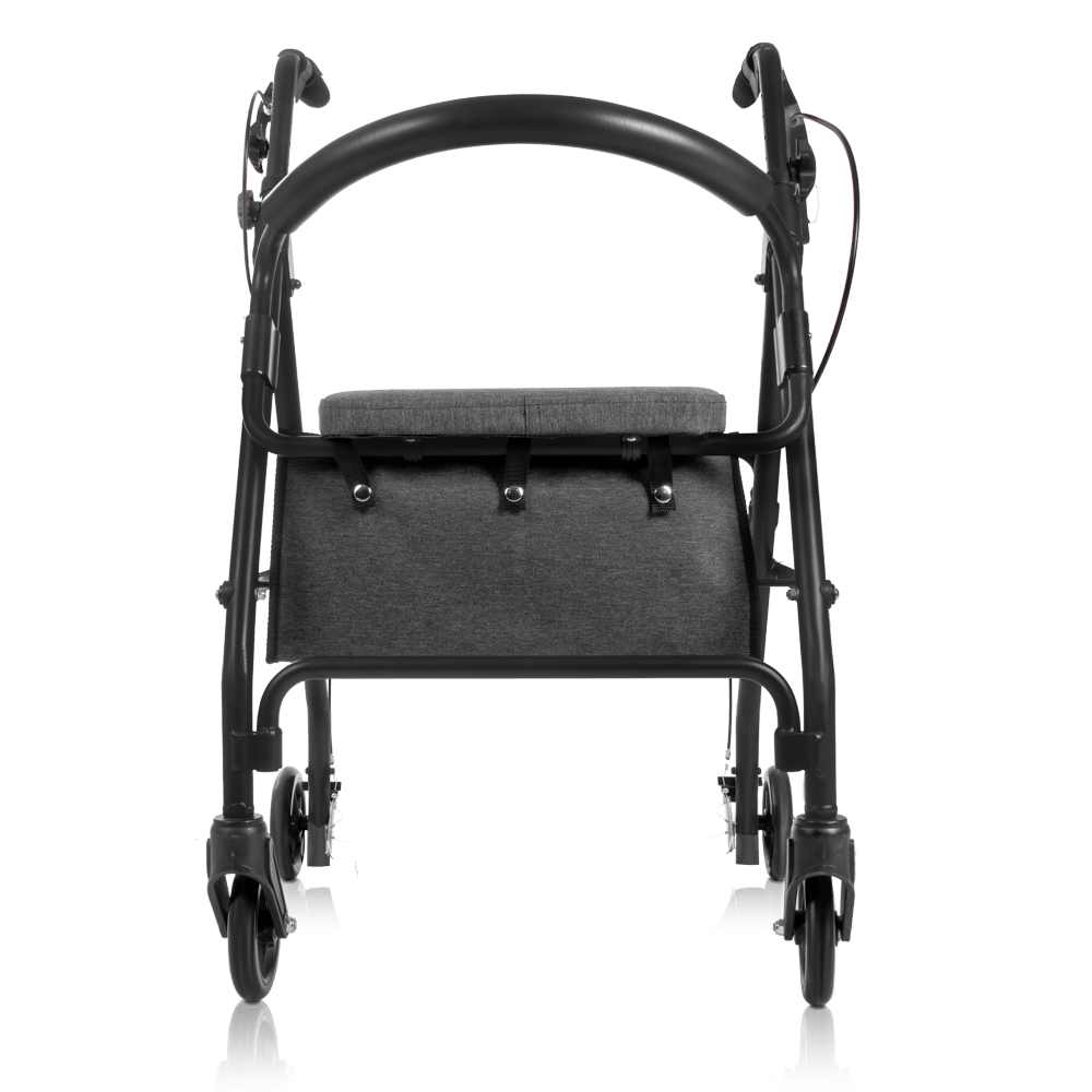 El andador 4200 ofrece un asiento amplio y acolchado de 35 cm de ancho y 34 cm de profundidad, con un espacio útil para sentarse de 45 cm. Además, cuenta con una práctica bolsa integrada para guardar pequeños objetos o documentos.