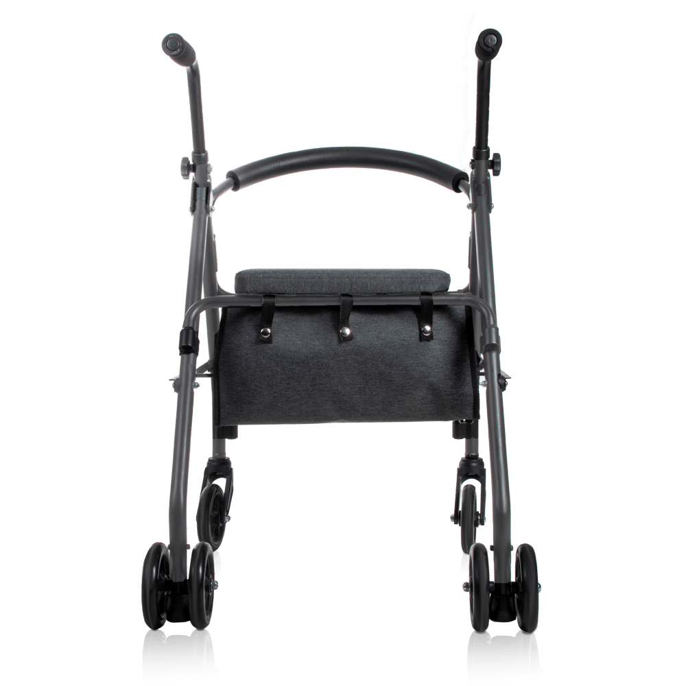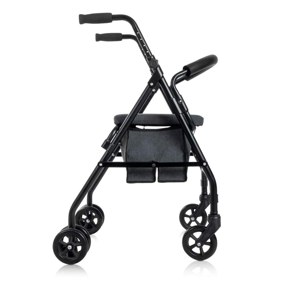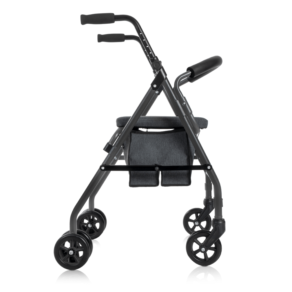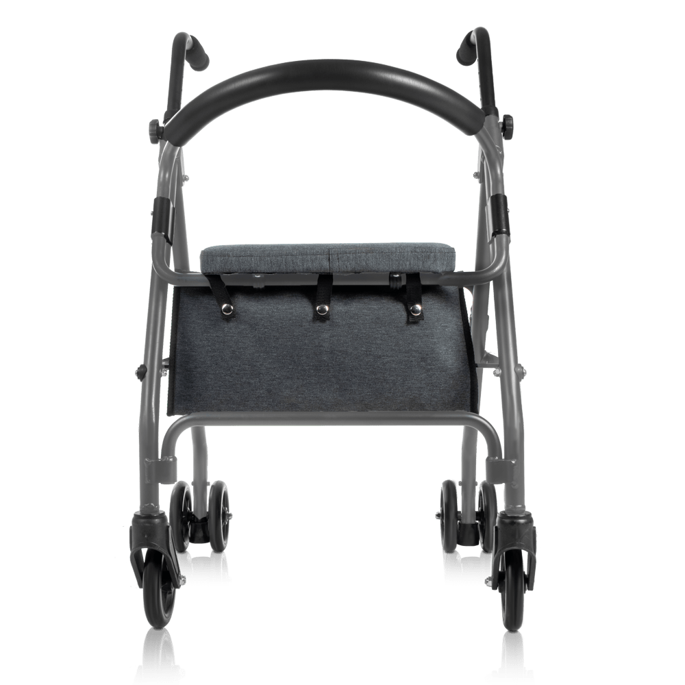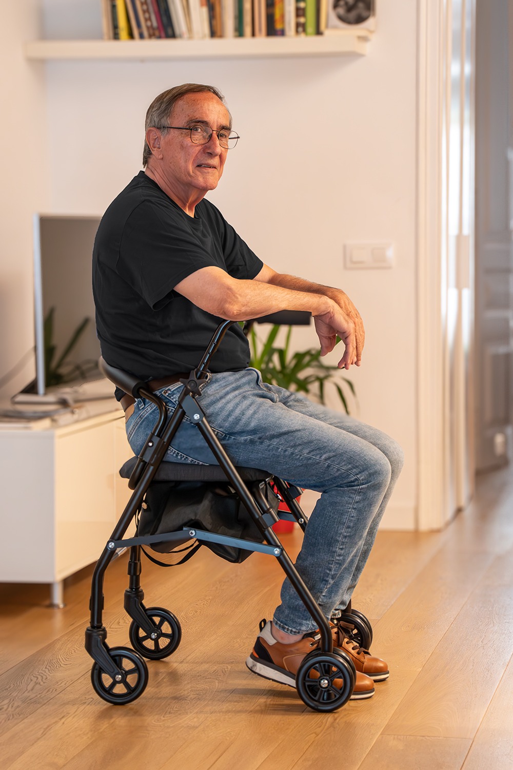 El andador 4200 ofrece un asiento amplio y acolchado de 35 cm de ancho y 34 cm de profundidad, con un espacio útil para sentarse de 45 cm. Además, cuenta con una práctica bolsa integrada para guardar pequeños objetos o documentos.