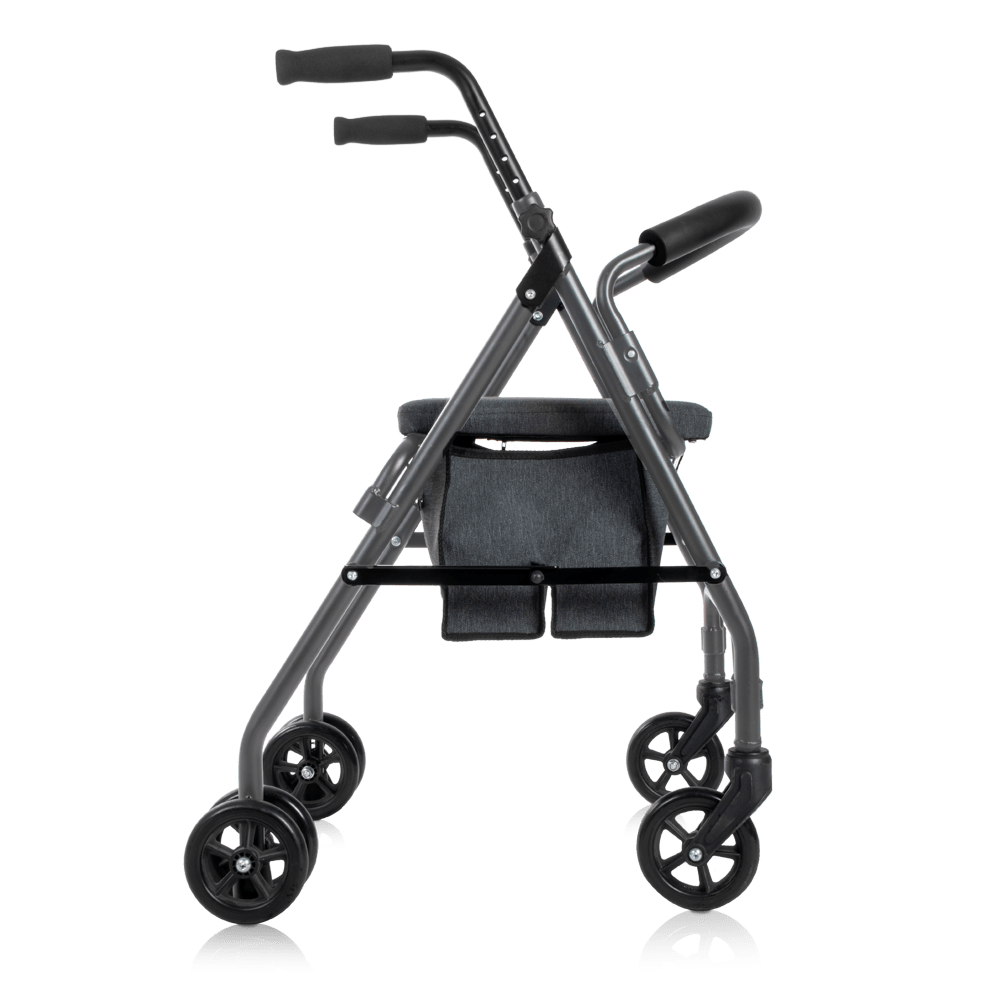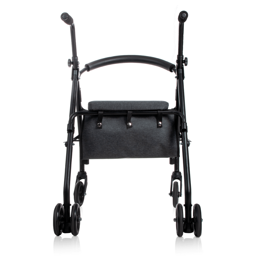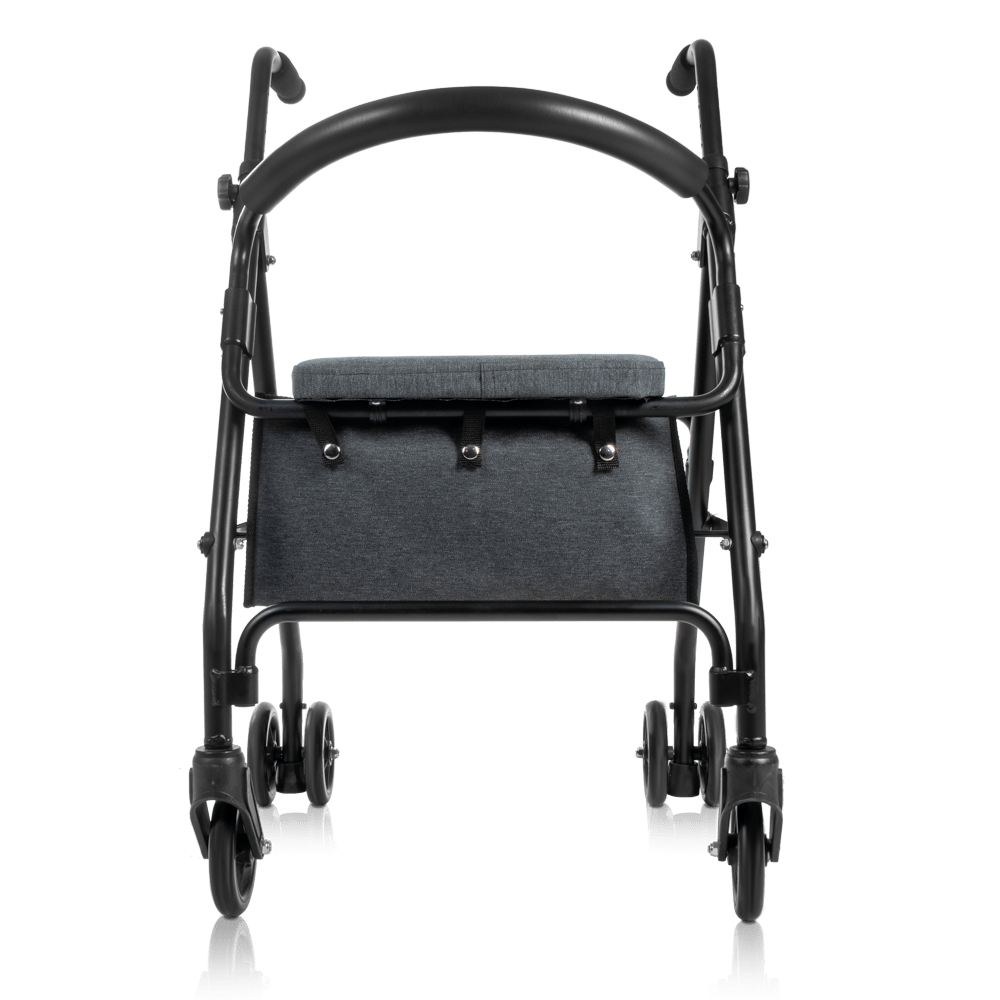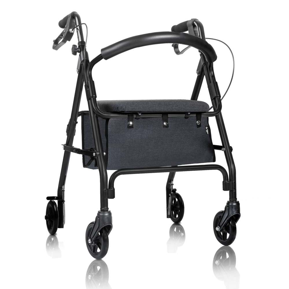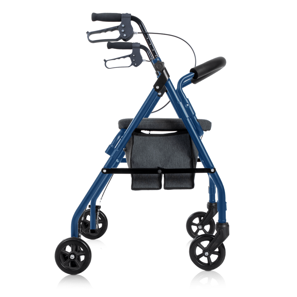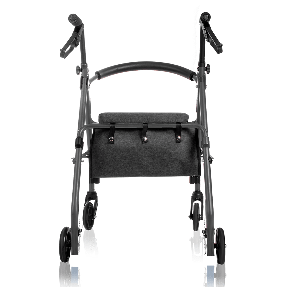 El andador 4200 ofrece un asiento amplio y acolchado de 35 cm de ancho y 34 cm de profundidad, con un espacio útil para sentarse de 45 cm. Además, cuenta con una práctica bolsa integrada para guardar pequeños objetos o documentos.