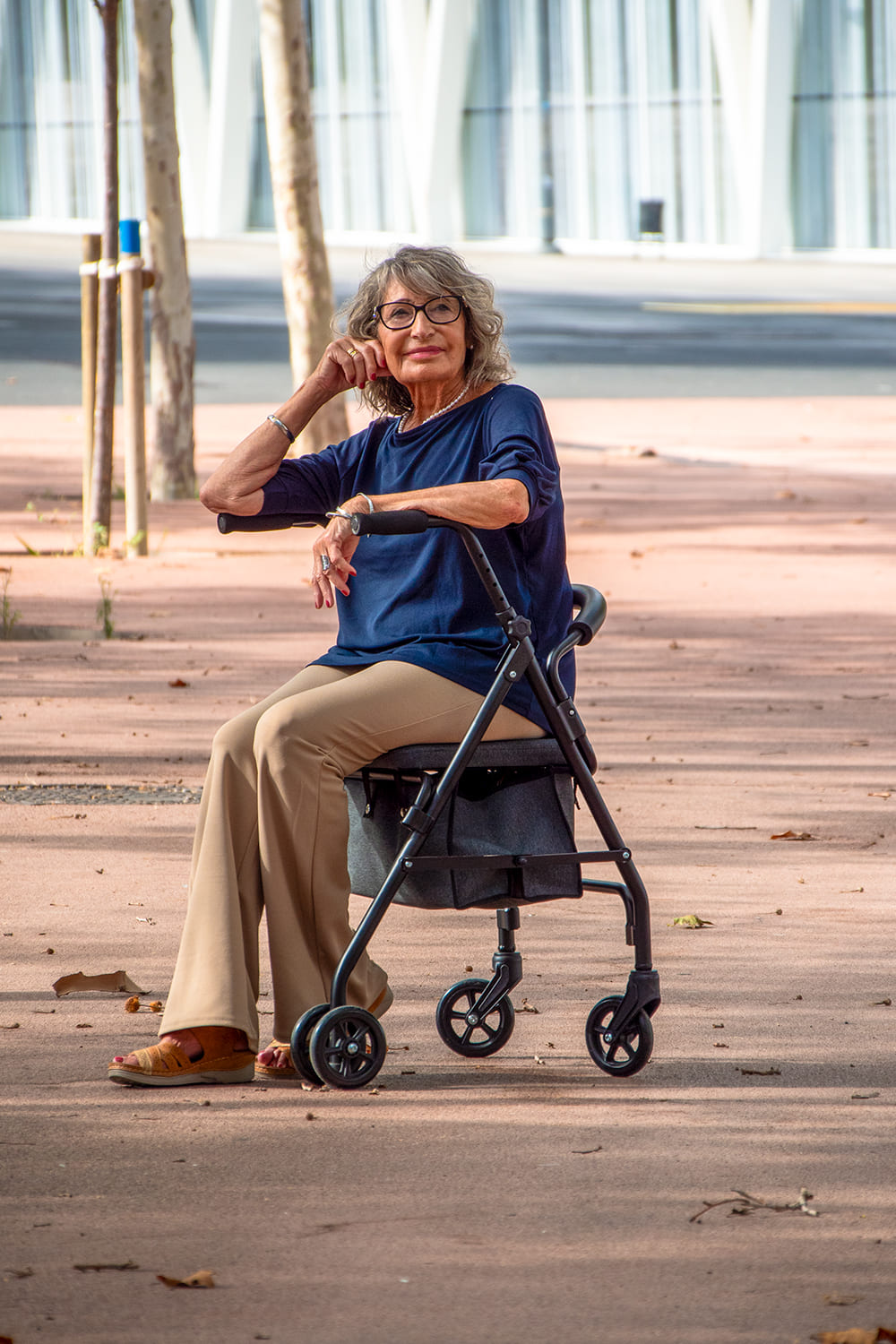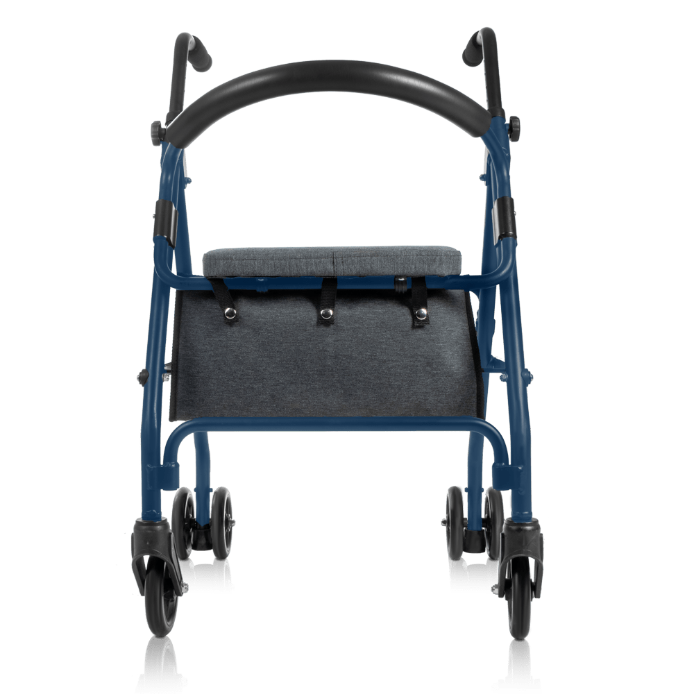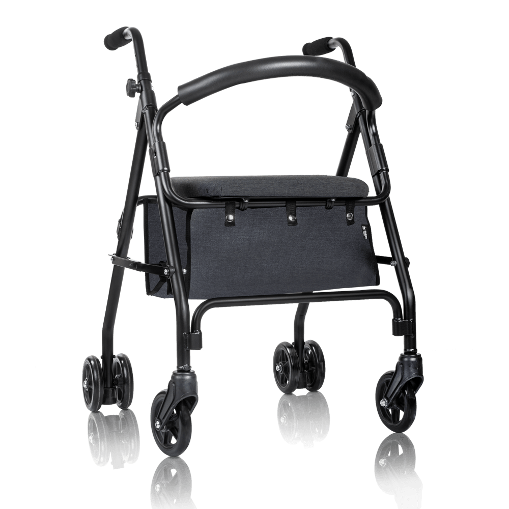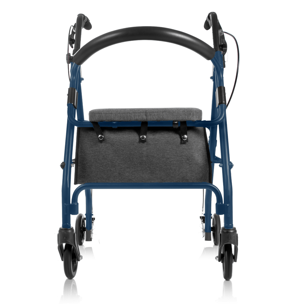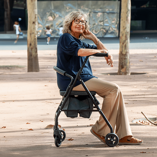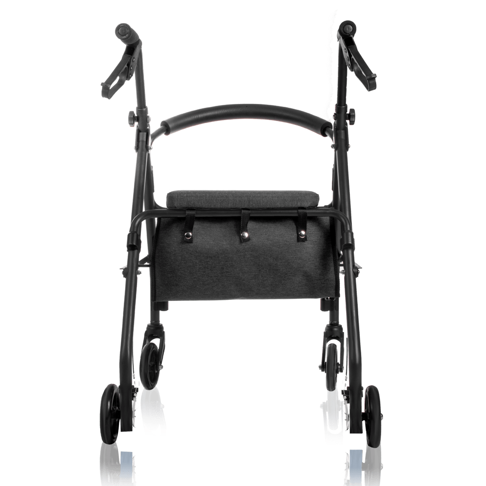 El andador 4200 ofrece un asiento amplio y acolchado de 35 cm de ancho y 34 cm de profundidad, con un espacio útil para sentarse de 45 cm. Además, cuenta con una práctica bolsa integrada para guardar pequeños objetos o documentos.