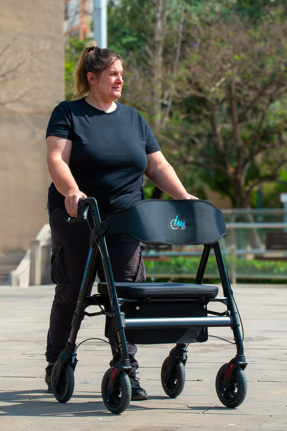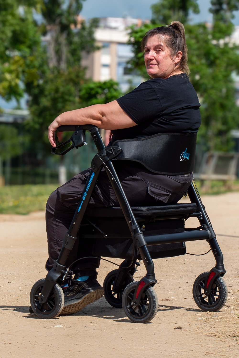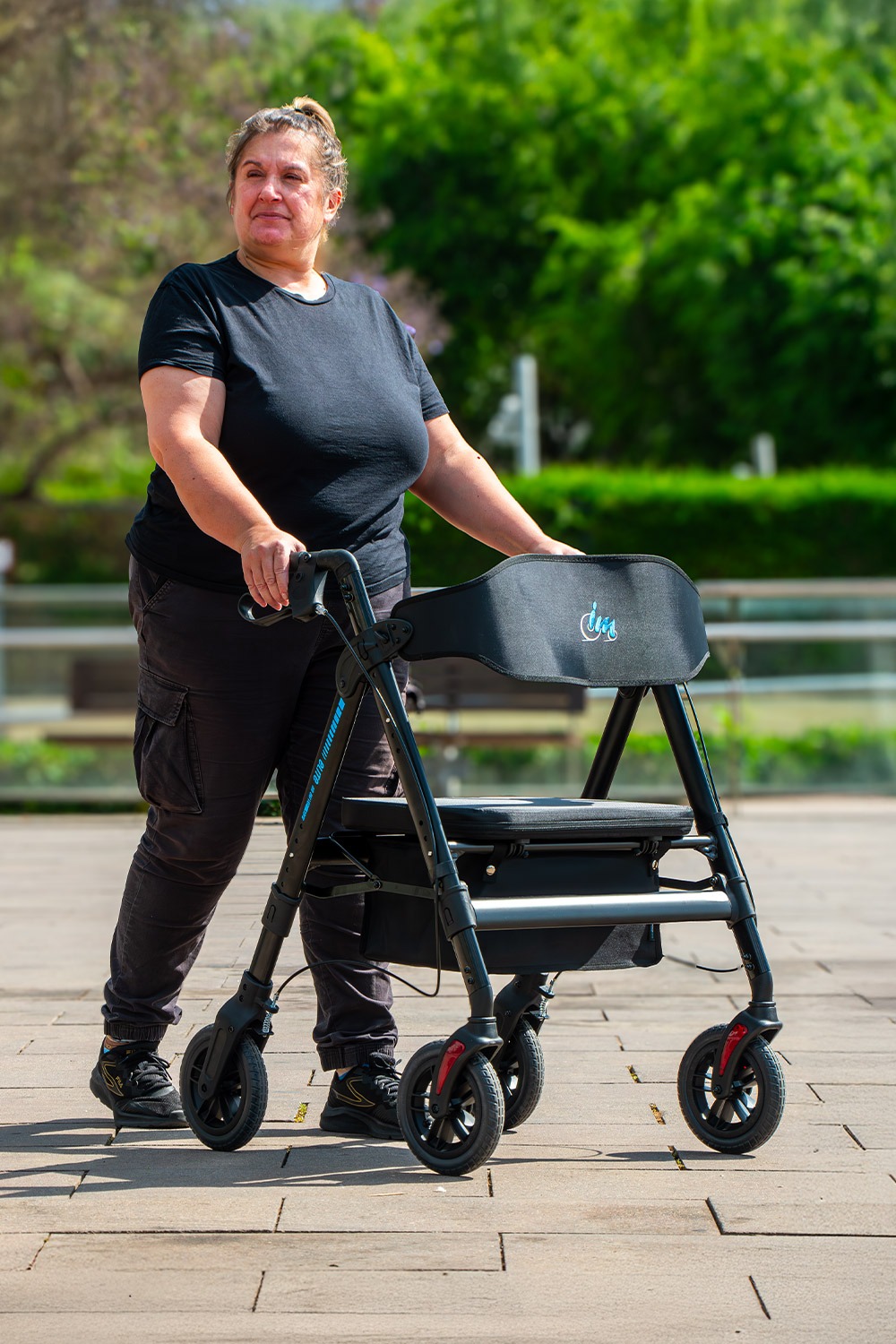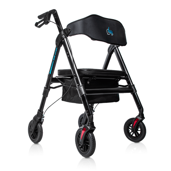 El andador Elite XL está equipado con cuatro ruedas macizas de gran tamaño, diseñadas para ofrecer máxima resistencia y estabilidad. Cada rueda tiene un diámetro de 20 cm y un ancho de 3,5 cm. Su diseño robusto permite soportar hasta 210 kg, manteniendo siempre un rendimiento óptimo.