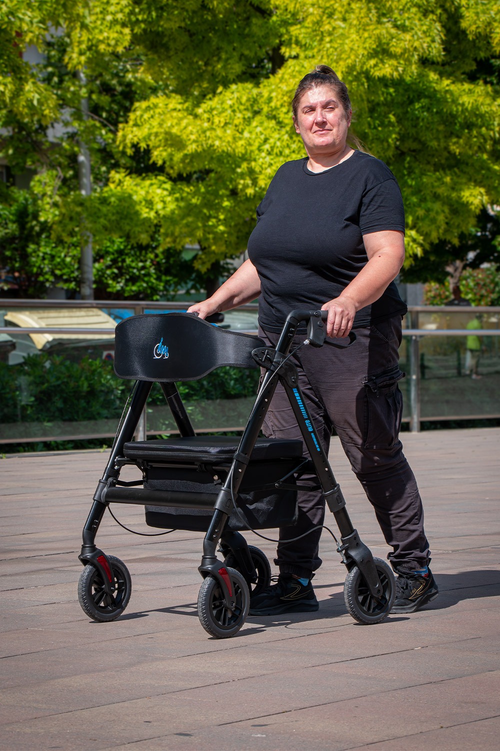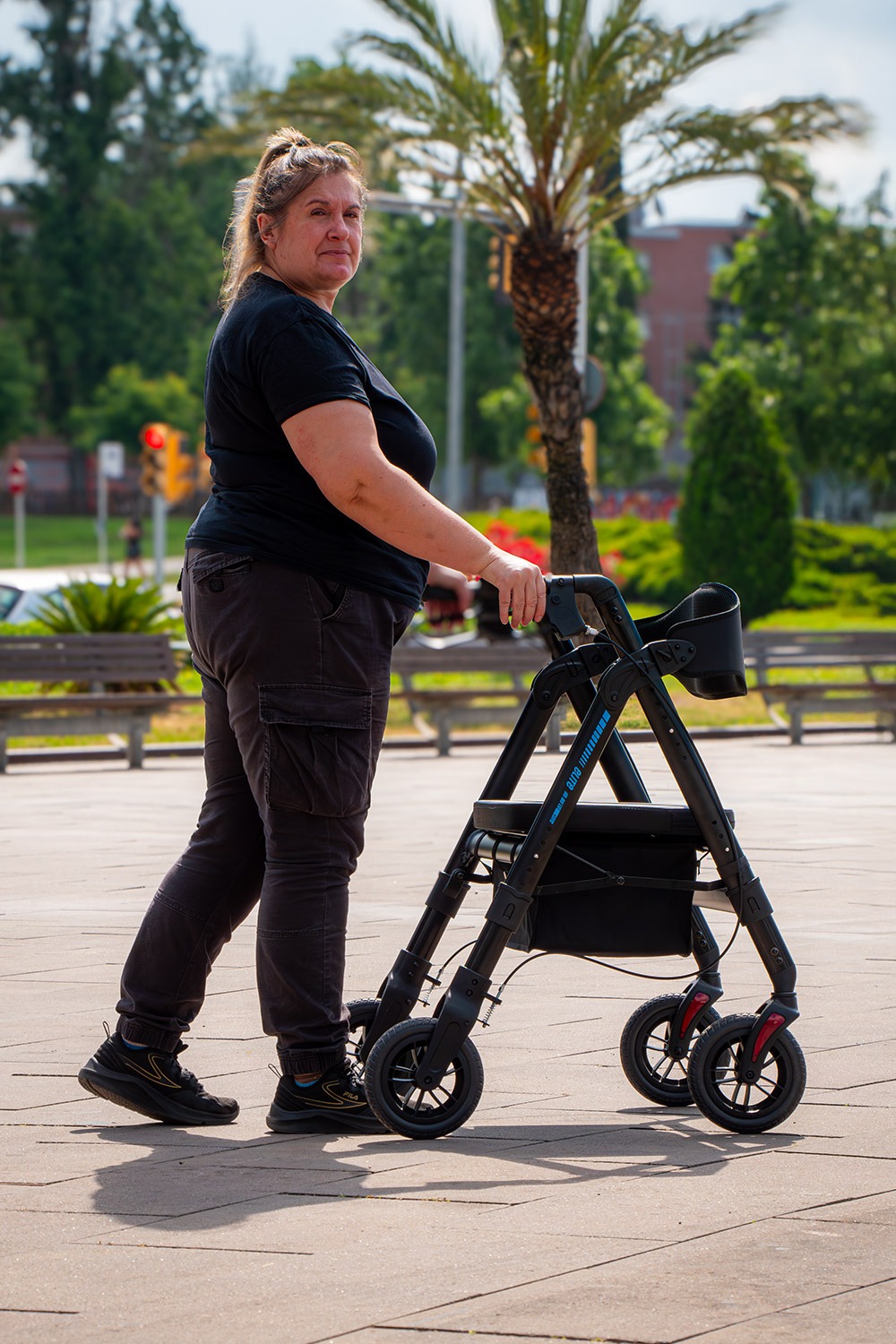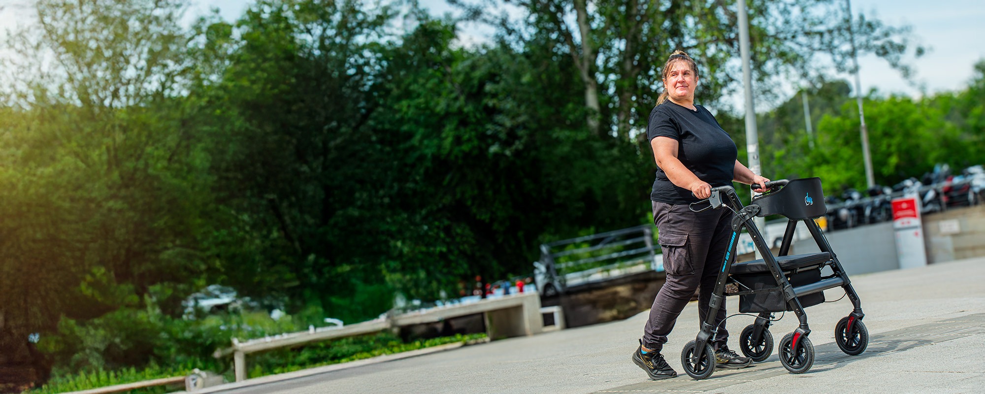 El andador Elite XL está equipado con cuatro ruedas macizas de gran tamaño, diseñadas para ofrecer máxima resistencia y estabilidad. Cada rueda tiene un diámetro de 20 cm y un ancho de 3,5 cm. Su diseño robusto permite soportar hasta 210 kg, manteniendo siempre un rendimiento óptimo.