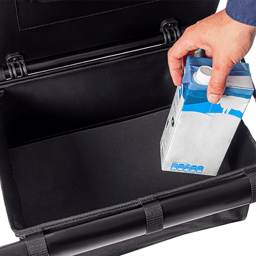 Incluye una cómoda cesta de tela opaca con una capacidad de 21 litros. El asiento es abatible, permitiendo un acceso fácil, que además cuenta con un bolsillo interior adicional para guardar objetos pequeños. La cesta es extraíble y lavable, lo que facilita su limpieza y mantenimiento.
