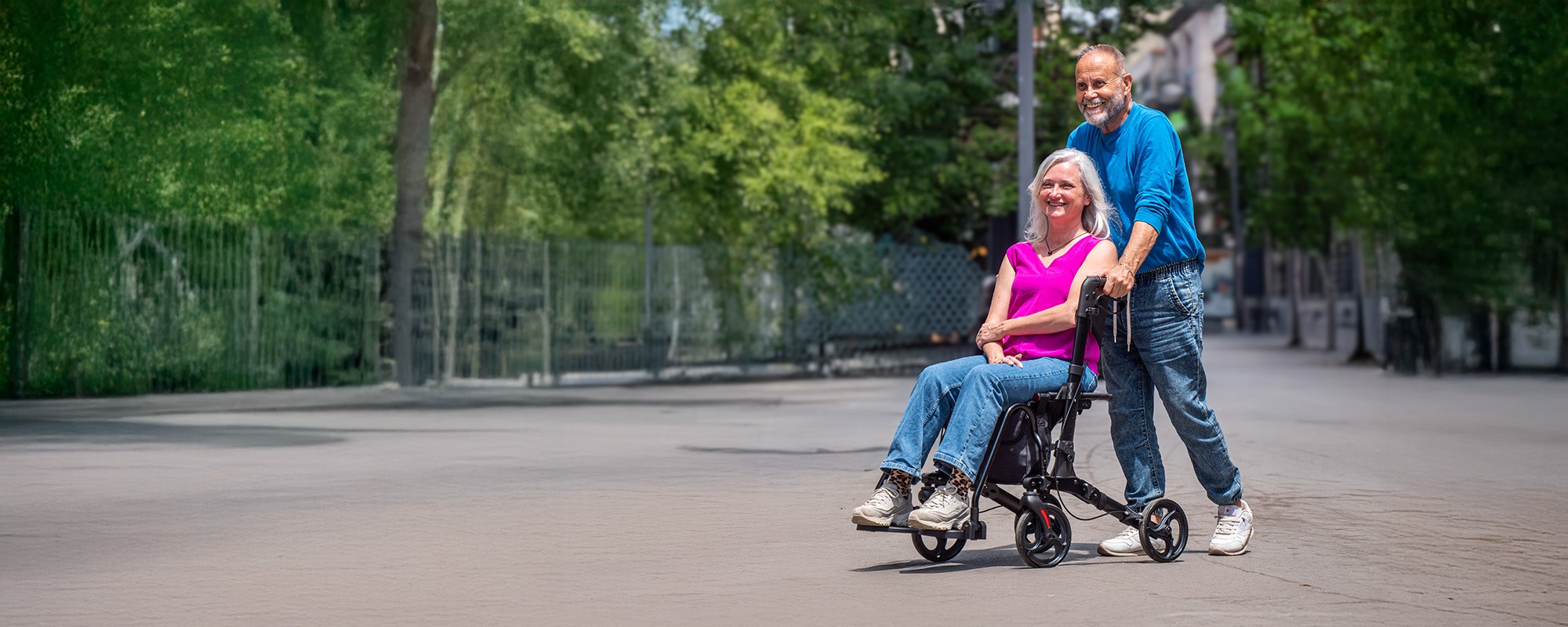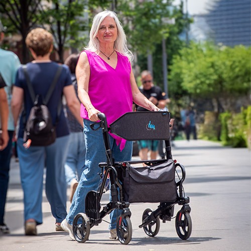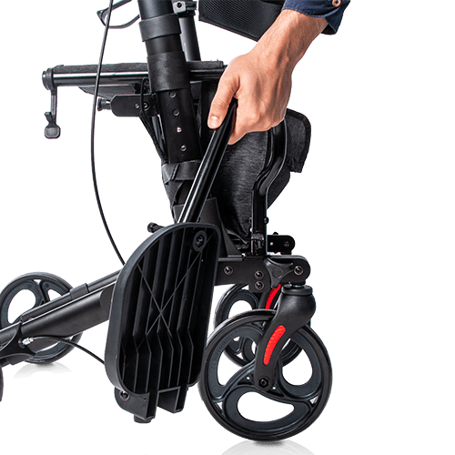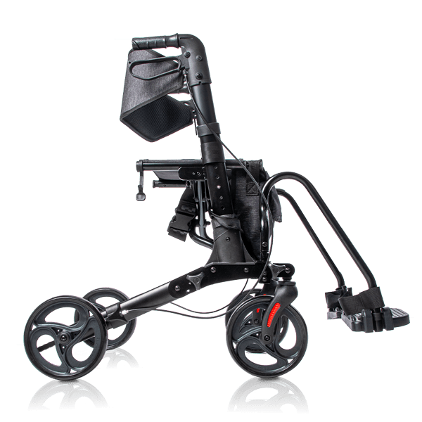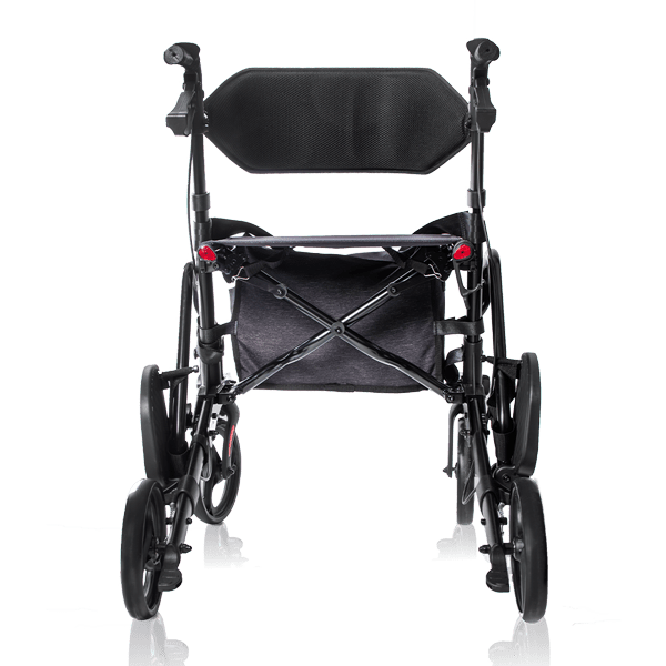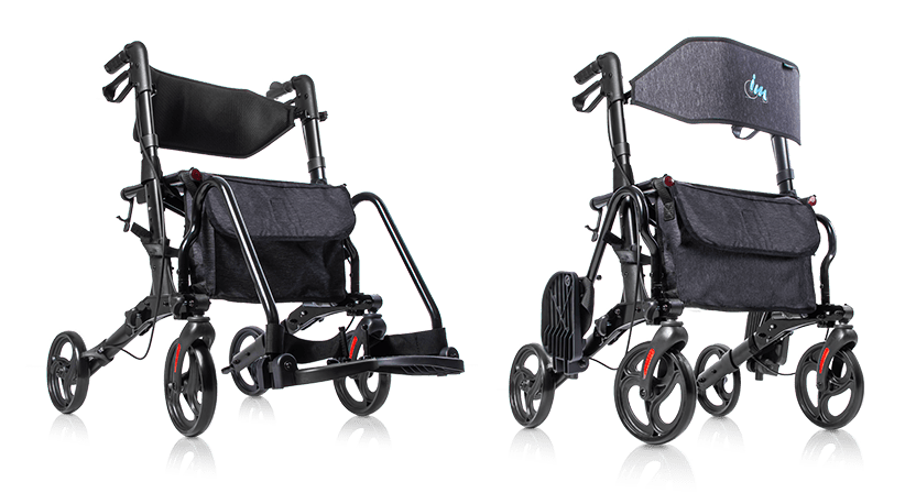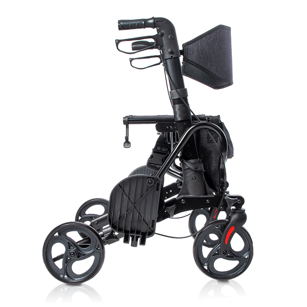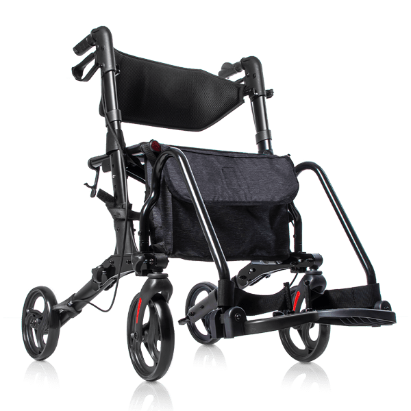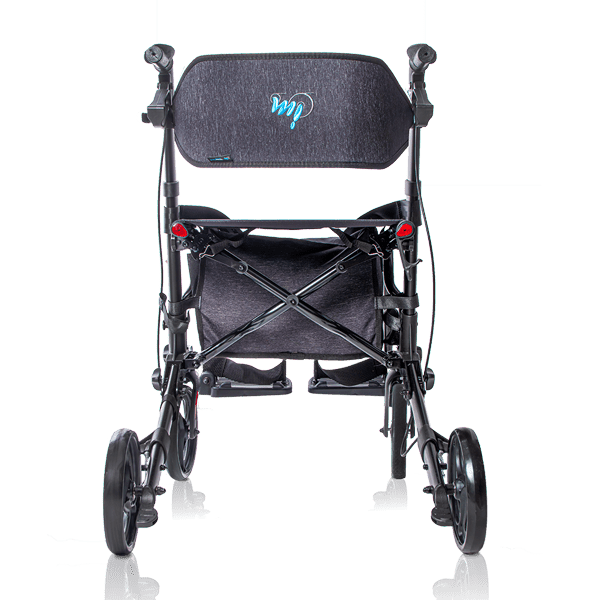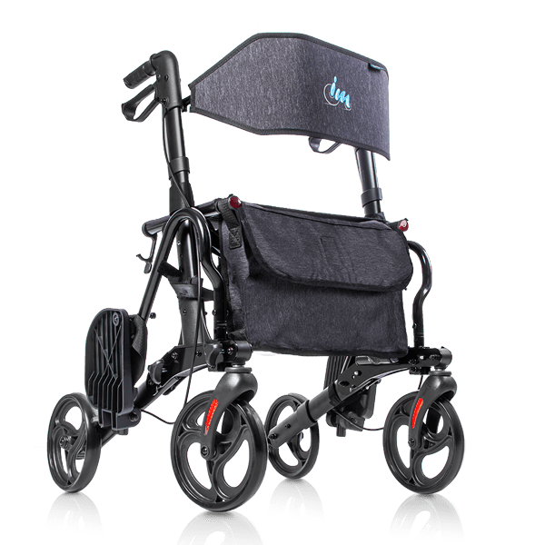 El andador Magnum Plus destaca por su diseño multifuncional, ya que puede utilizarse tanto como andador como silla de ruedas manual. Con un simple movimiento para abatir el respaldo y girar los reposapiés, el usuario puede convertirlo fácilmente en una cómoda y segura silla de ruedas, adaptando su posición según sus necesidades.