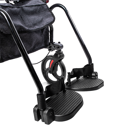 El andador Magnum Plus incorpora reposapiés plegables, que pueden retirarse o colocarse según se utilice como andador o silla de ruedas. Para un mejor posicionamiento del usuario, los reposapiés son regulables en altura en tres niveles, de 40 a 46 cm. Además, las plataformas son abatibles, lo que facilita el plegado.