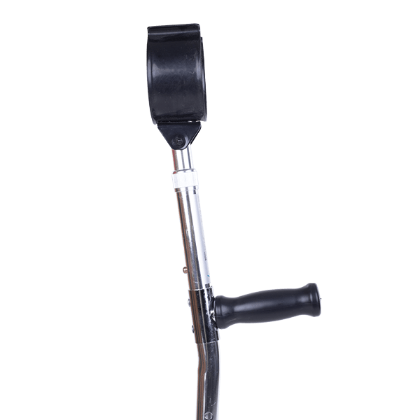 La muleta 7750, está fabricada en acero inoxidable y está diseñada con codera Progress, un sistema que permite dos posiciones, normal de 90º y es abatible hacia arriba de hasta 27º, permitiendo tener libertad de movimiento en el brazo
