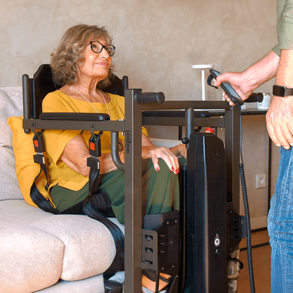 Realizar transferencias es sencillo y rápido, ya sea desde el sofá o un sillón en su hogar. Simplemente deslice las patas de la grúa por debajo de las del sofá, cuya altura mínima debe ser de 11,5 cm.