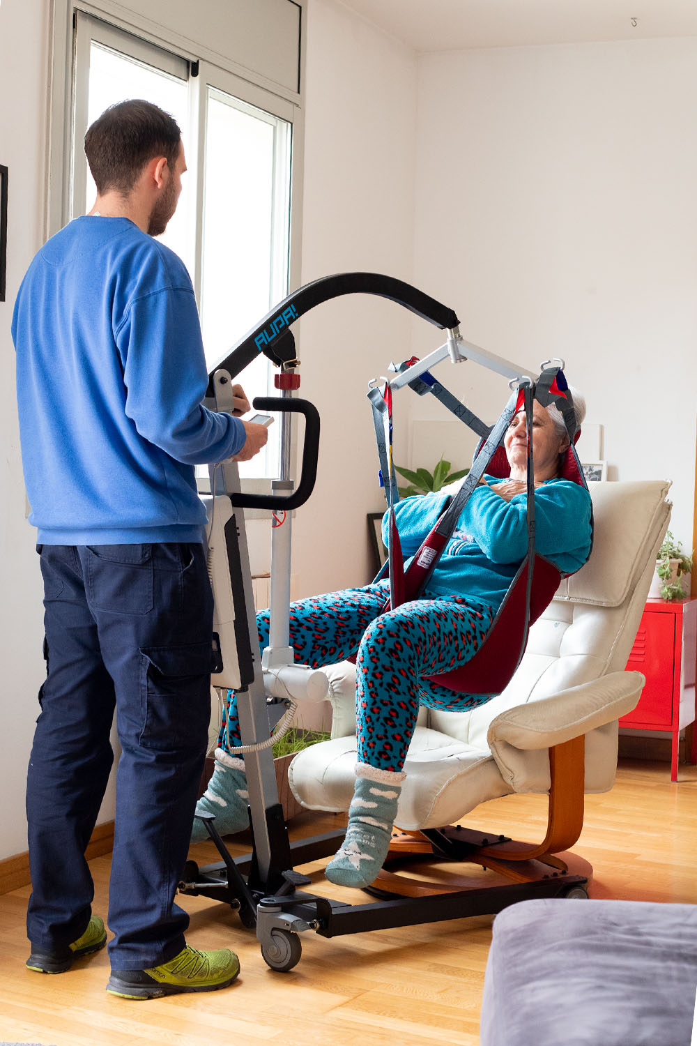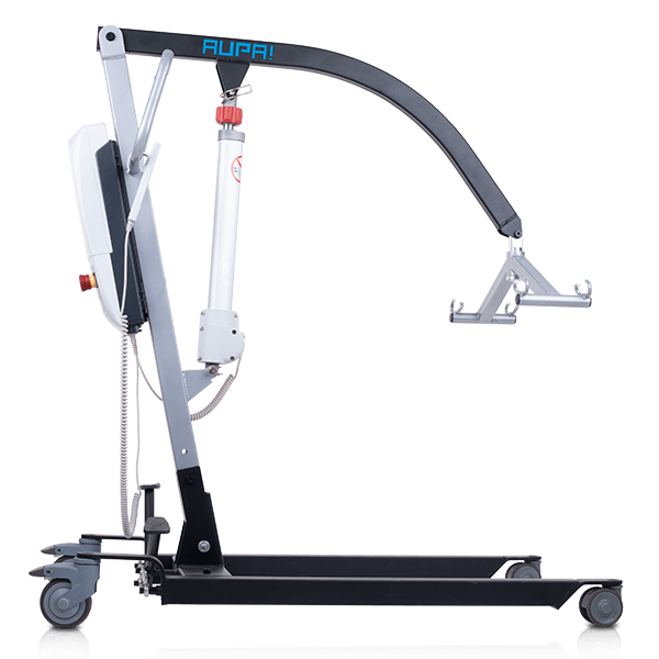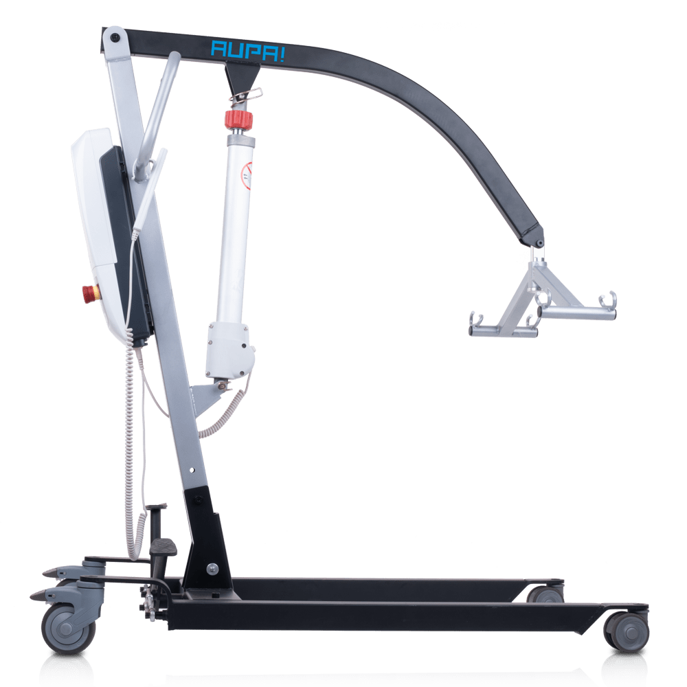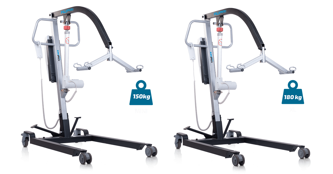 Existen dos modelos distintos: la grúa Aúpa Mini, diseñada para una carga máxima de 150 kg, y la grúa Aúpa XL, con un peso máximo soportado de hasta 180 kg.
