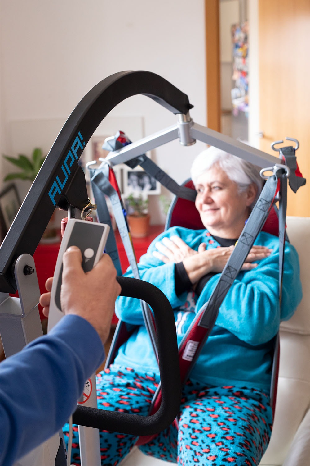 El diseño de las grúas Aúpa buscan maximizar la seguridad del usuario durante su uso, por lo que el arnés se adapta a las necesidades de la persona en cuestión, proporcionándole una sujeción óptima mientras lo mantiene suspendido en el aire para la realización de las tareas.
