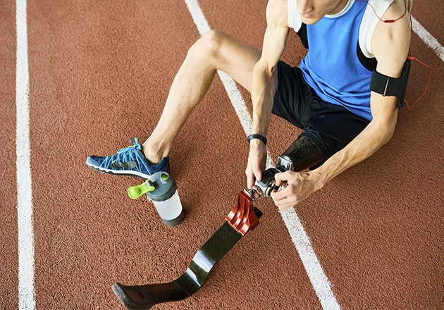Competición con prótesis de rodilla Los que tengan una amputación por encima del fémur, pueden competir en esta categoría. Deben realizar tareas diarias como subir escaleras, o superar obstáculos.