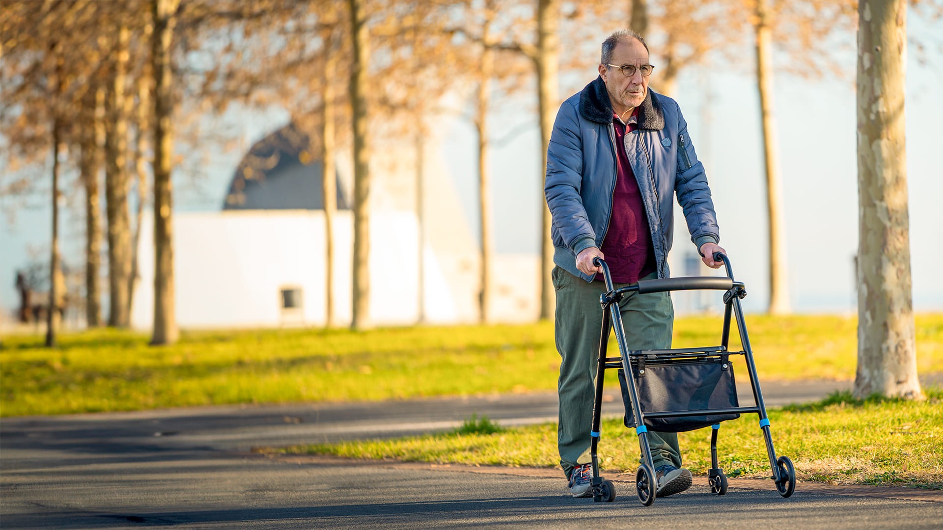 Las ruedas Walk&Roll® son una solución revolucionaria que transforma los andadores de interior a exterior. Con un sistema de freno a presión, al presionar el caminador, la contera se apoya en el suelo, frenando el andador y proporcionando una mayor estabilidad y seguridad al usuario.