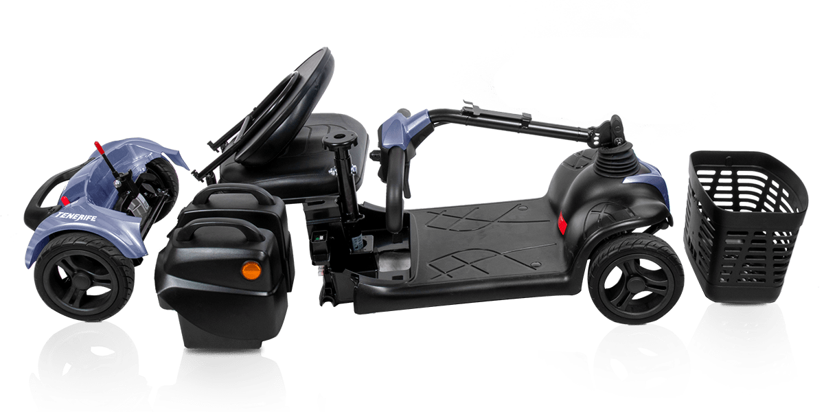El scooter Tenerife se puede desmontar en 5 partes de una forma rápida y sencilla. Esto permite su almacenaje en cualquier lugar sin dificultades, además que facilita el poder transportarlo en el maletero del coche.