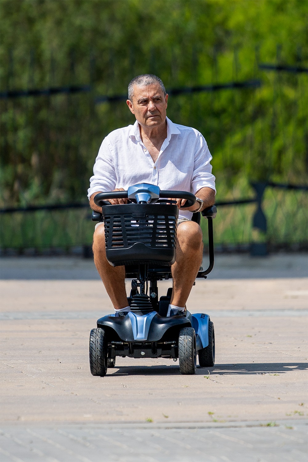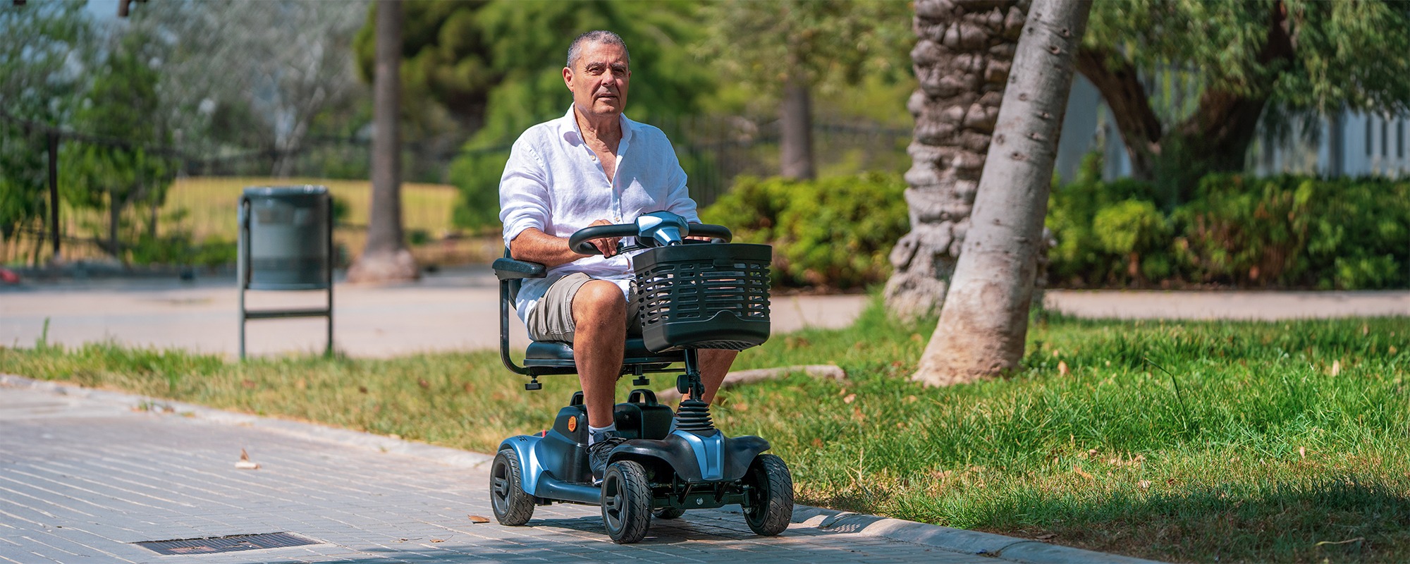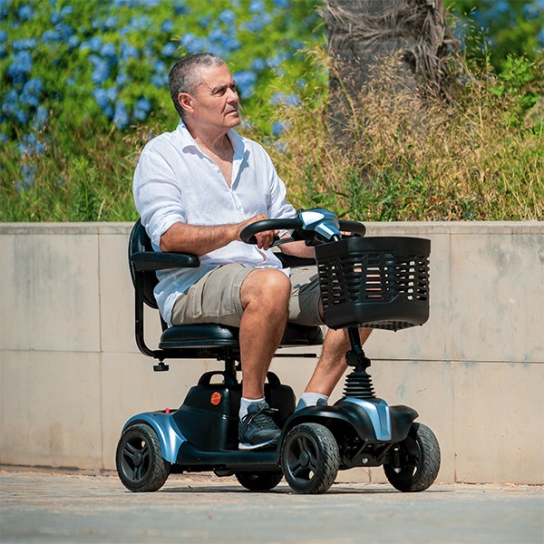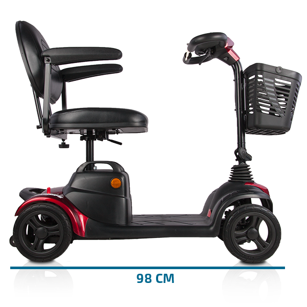 El scooter Tenerife es el más corto del mercado, perfecto para espacios reducidos tanto en interiores (como por ejemplo el ascensor), como exteriores. El usuario tiene la facilidad de poder desplazarse sin dificultades.