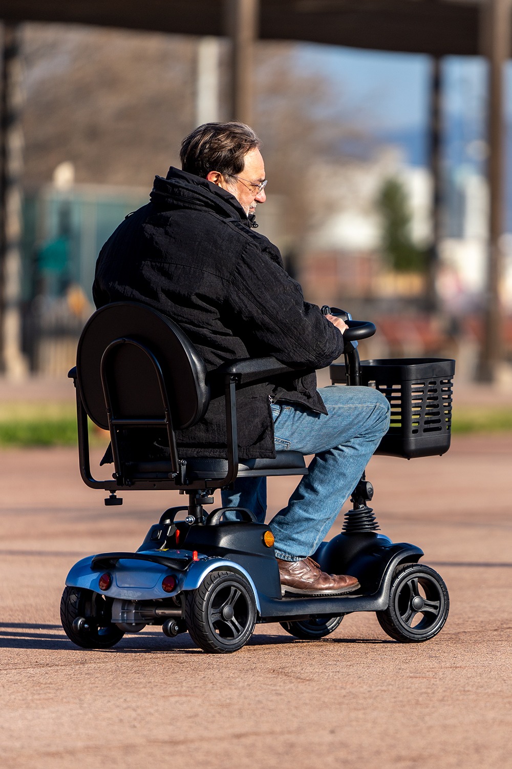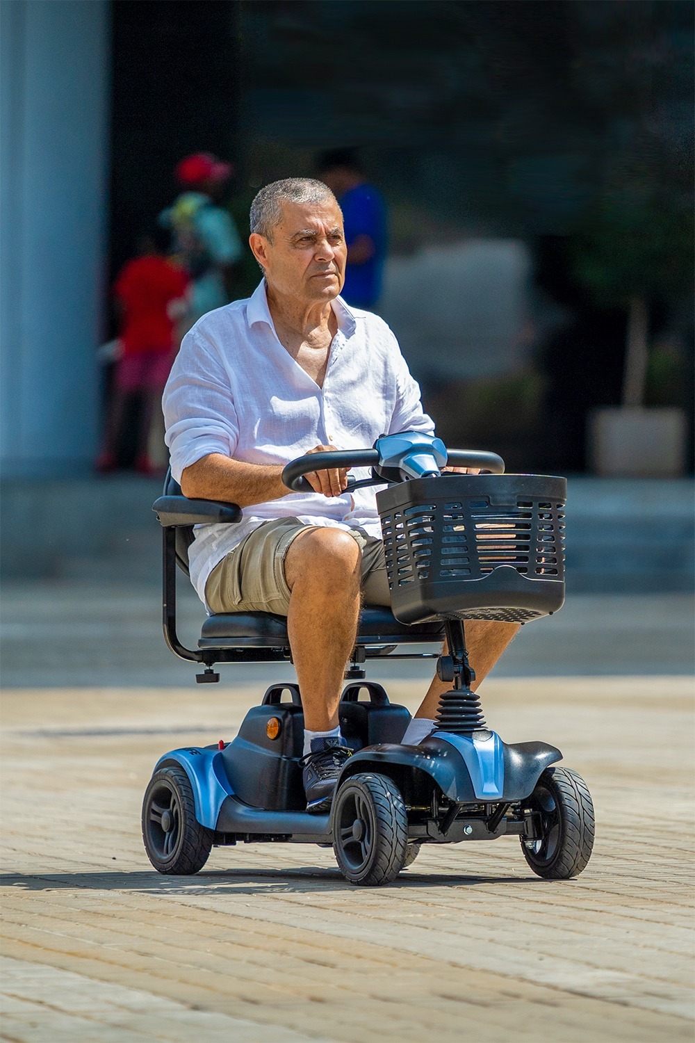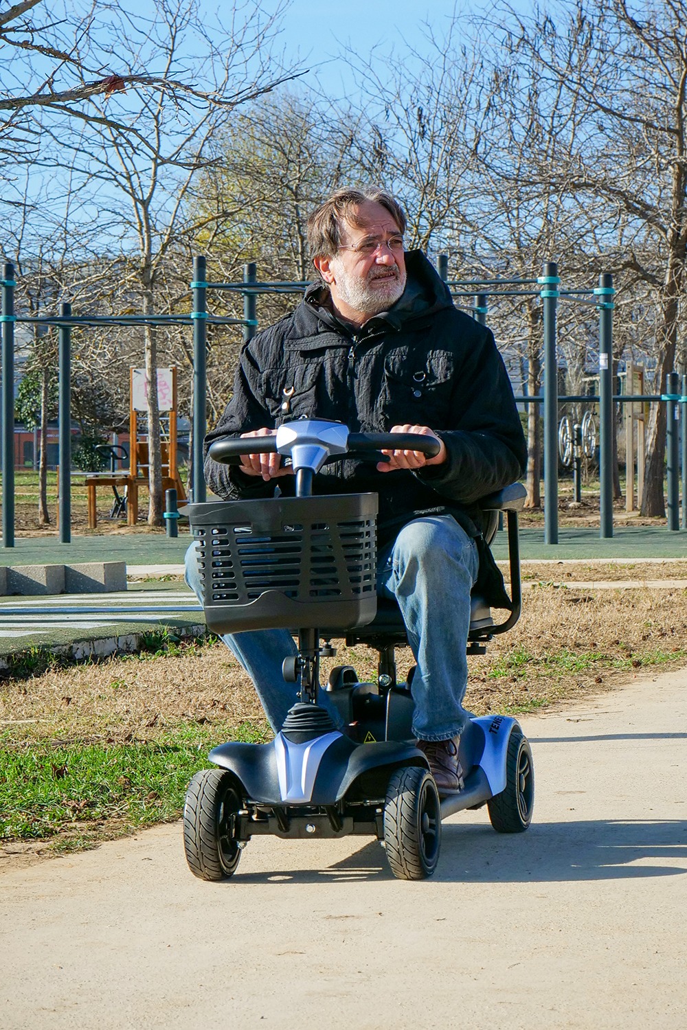 El scooter Tenerife es el más corto del mercado, perfecto para espacios reducidos tanto en interiores (como por ejemplo el ascensor), como exteriores. El usuario tiene la facilidad de poder desplazarse sin dificultades.