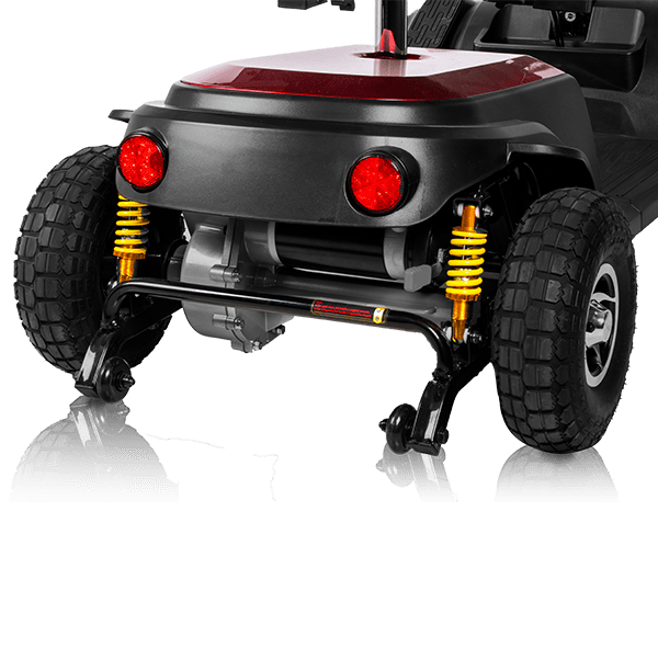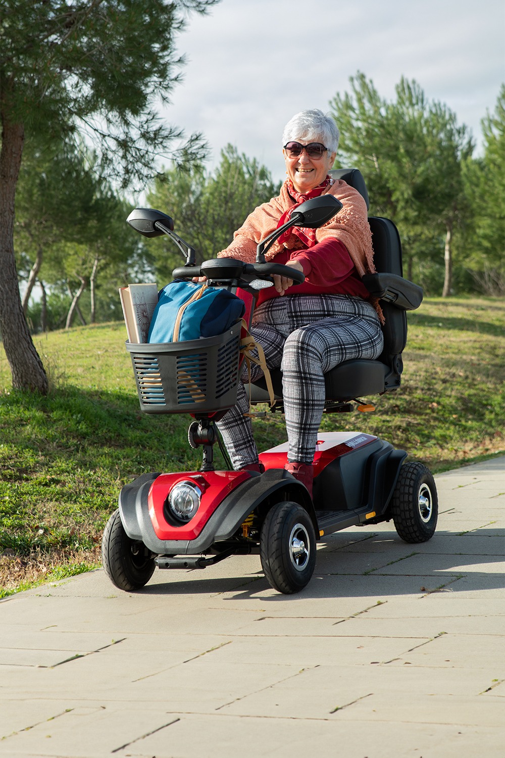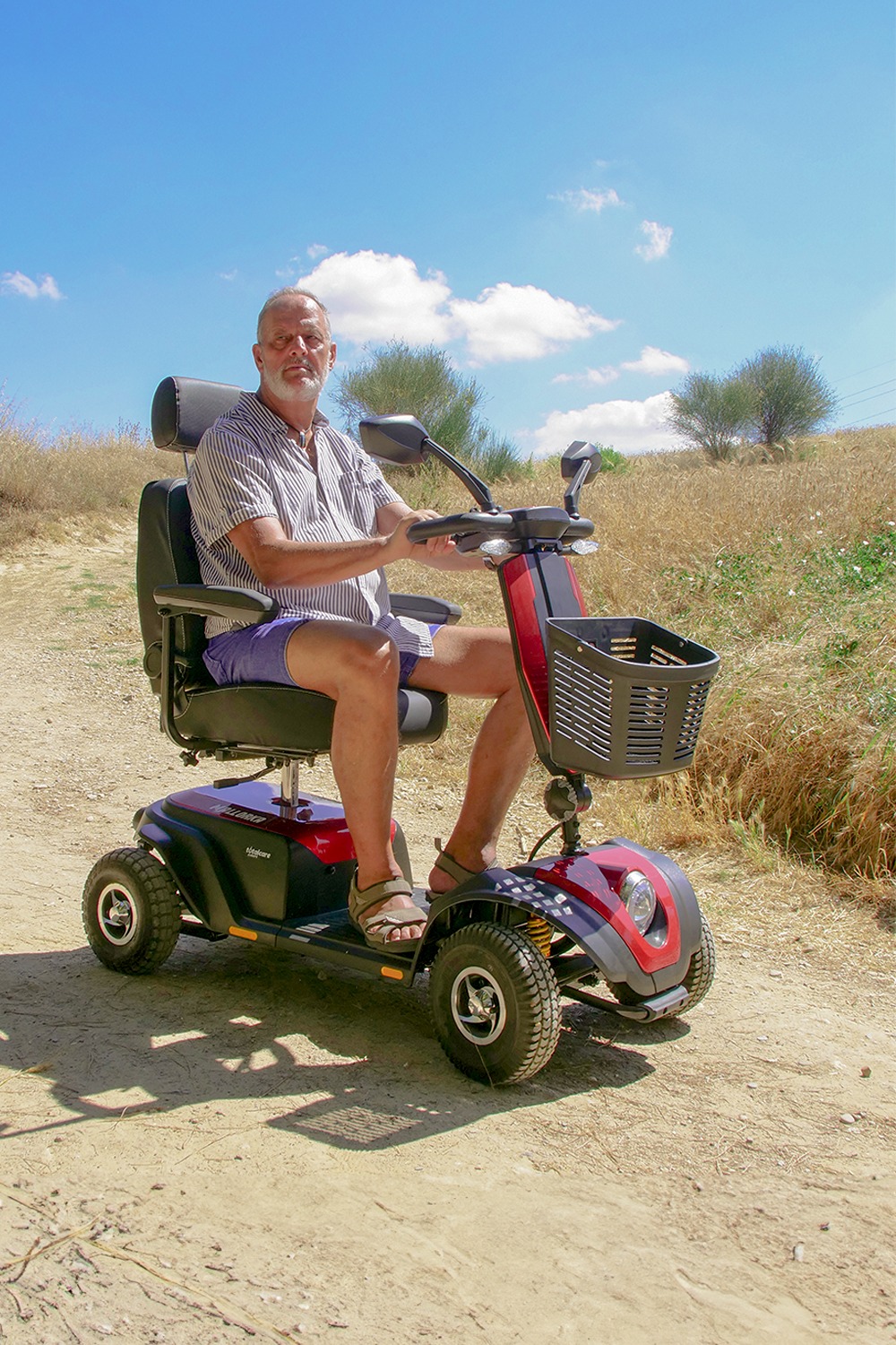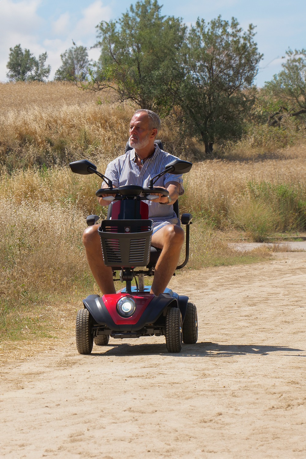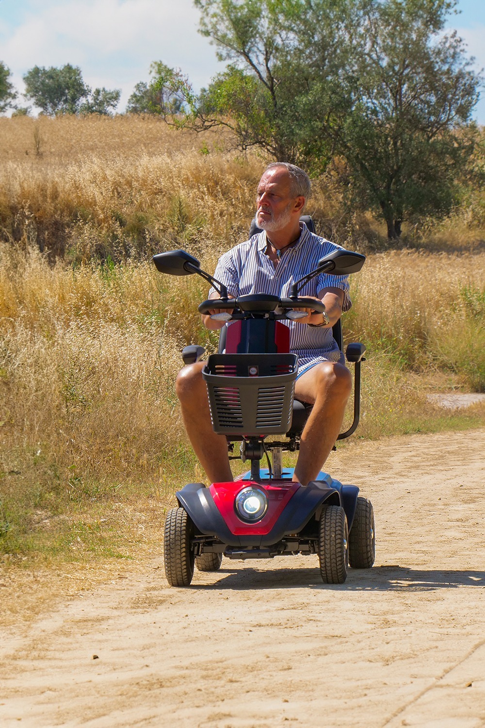 El scooter Mallorka, gracias a sus dimensiones y grandes ruedas de Ø 26 cm, se destaca como la elección perfecta para aquellos que residen en áreas rurales, ya que permite conducir con facilidad en terrenos irregulares, incluyendo superficies de tierra y otros obstáculos.