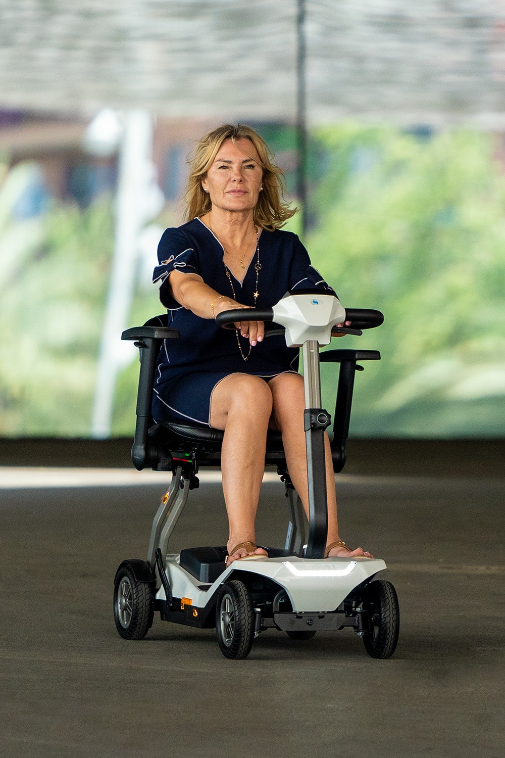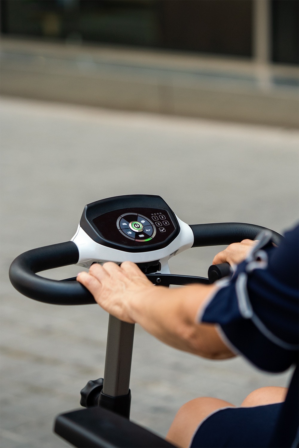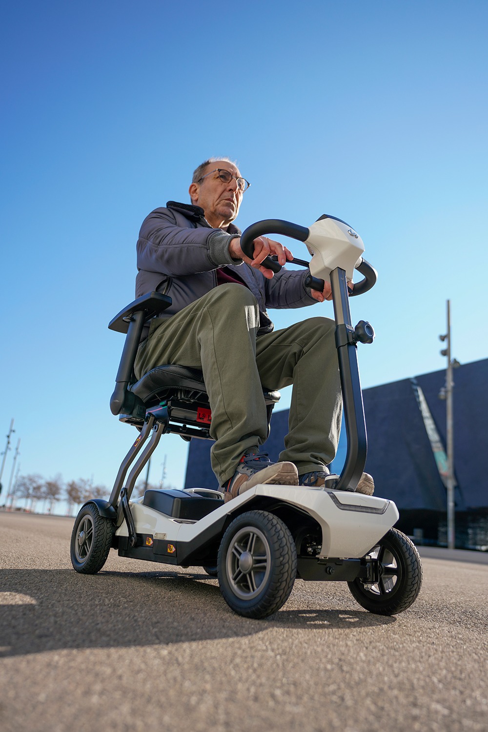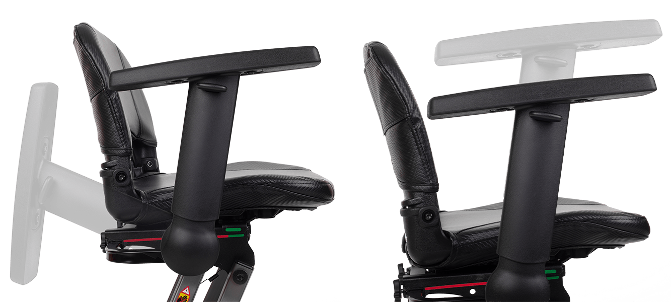 Los reposabrazos del scooter Bali son abatibles y regulables en altura y profundidad. De esta manera, el usuario puede ajustar el scooter a sus necesidades.