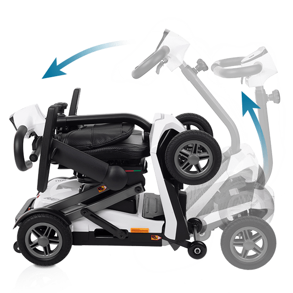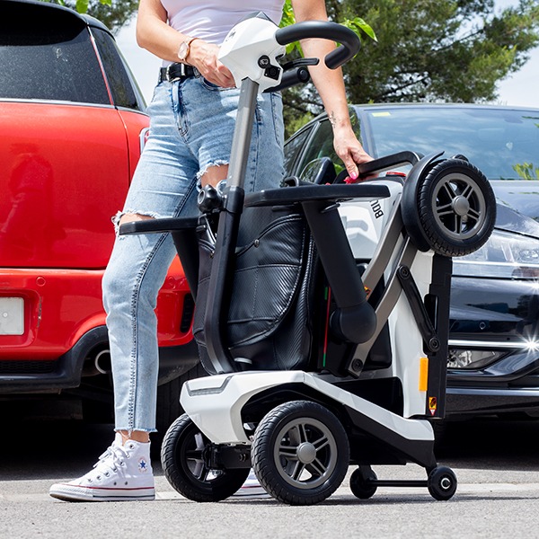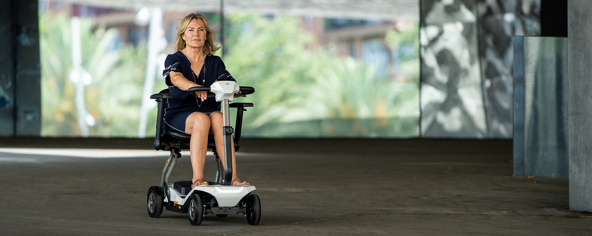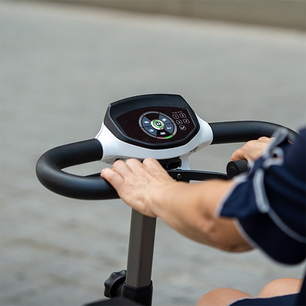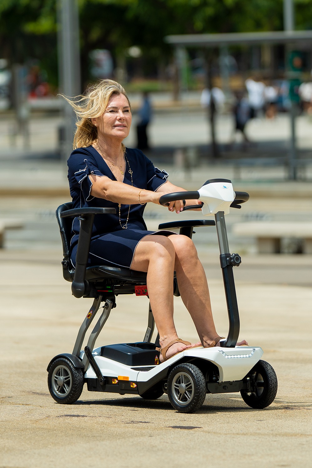 Los reposabrazos del scooter Bali son abatibles y regulables en altura y profundidad. De esta manera, el usuario puede ajustar el scooter a sus necesidades.