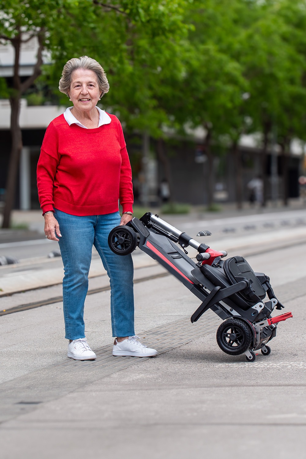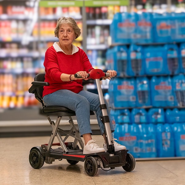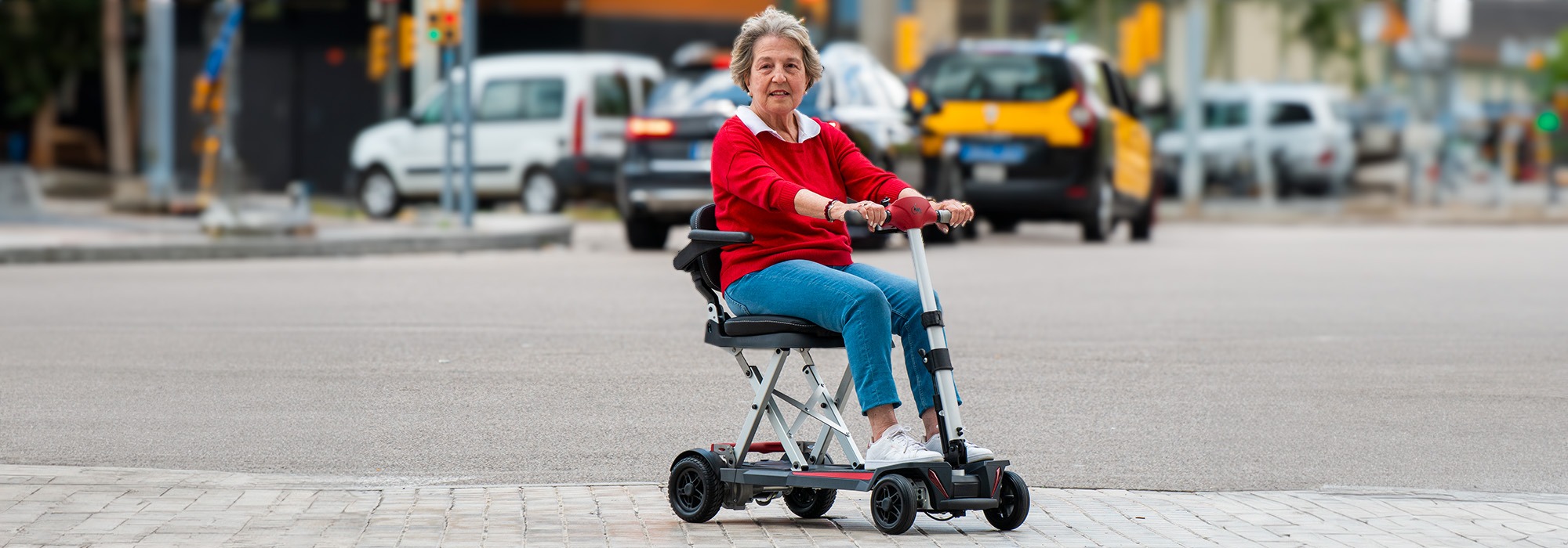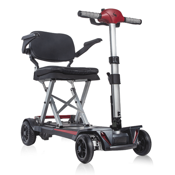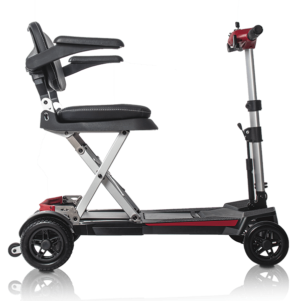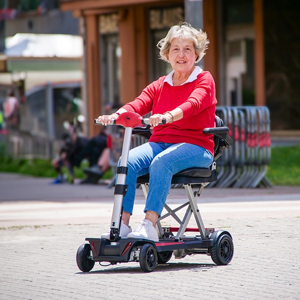 Además de ser muy ligero, el scooter Formentera es también extremadamente compacto. Con una profundidad de 97 cm, es uno de los scooters más cortos del mercado. Esta longitud le permite ser muy versátil en espacios reducidos, como ascensores pequeños. Su ancho total de 46 cm sin reposabrazos y de 56 cm con reposabrazos lo hace ideal para pasar por puertas y maniobrar en espacios limitados.