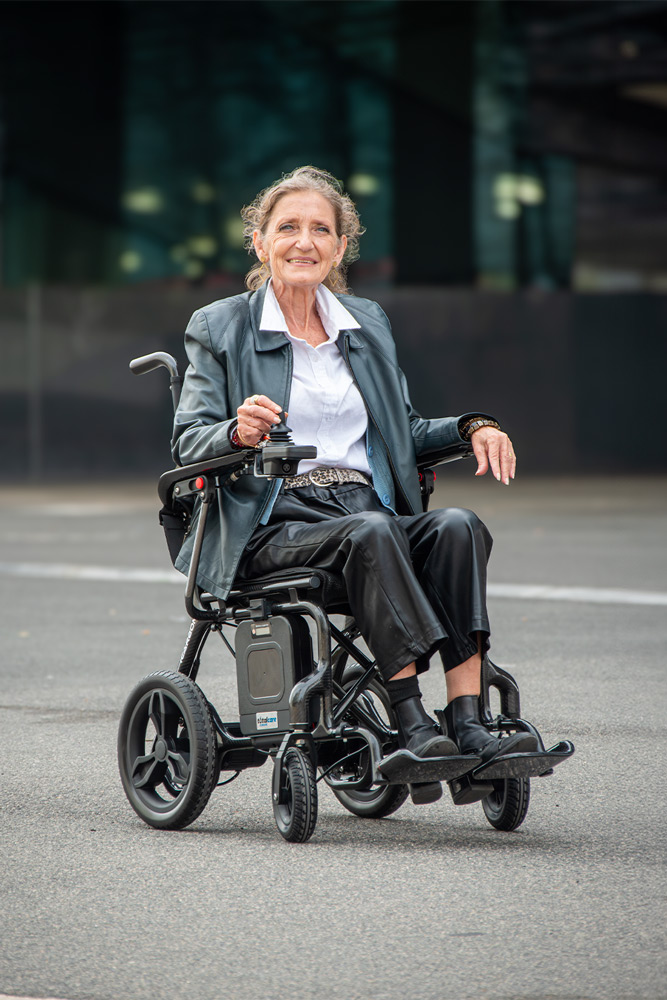 La iCarbon es perfecta para la movilidad en espacios reducidos gracias a sus dimensiones compactas (55 cm de ancho y 74 cm de profundidad) y su reducido radio de giro de 90 cm. Esto garantiza una perfecta circulación en áreas estrechas tanto en interiores como en exteriores.