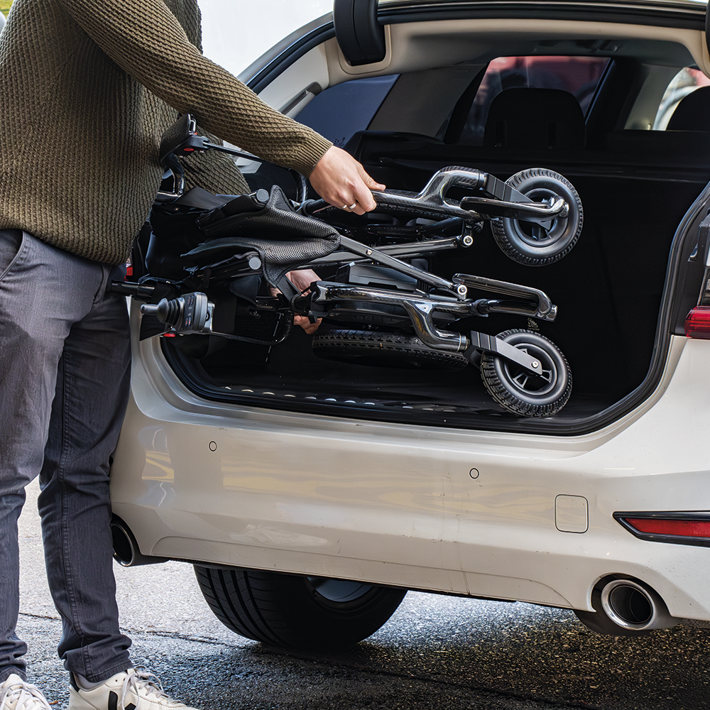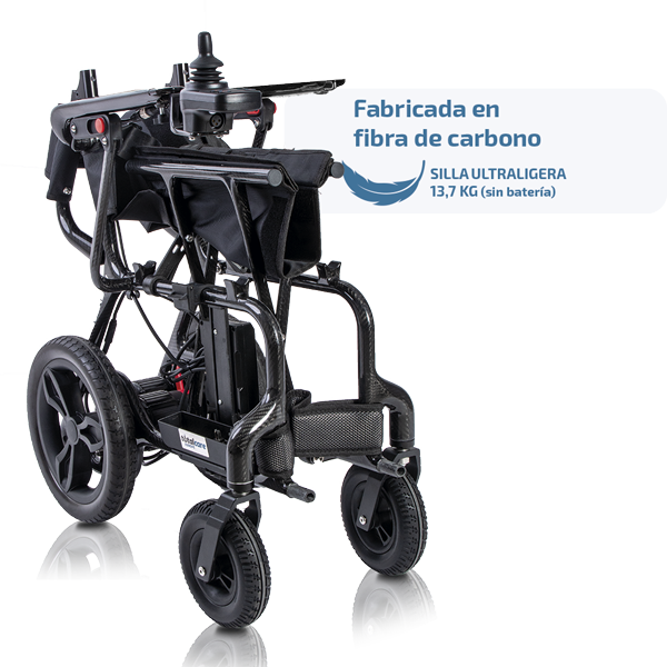 La iCarbon, fabricada en fibra de carbono, sorprende con su peso de tan solo 13,7 kg (sin batería). Esta silla, destaca por su diseño compacto, su peso ultraligero y sus acabados de alta calidad.