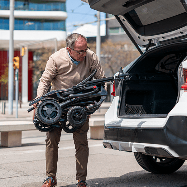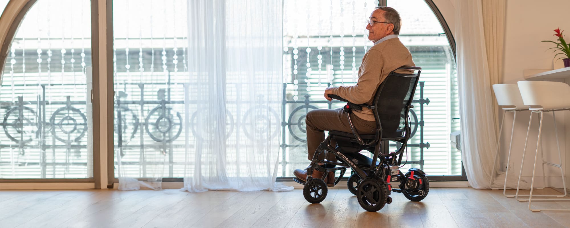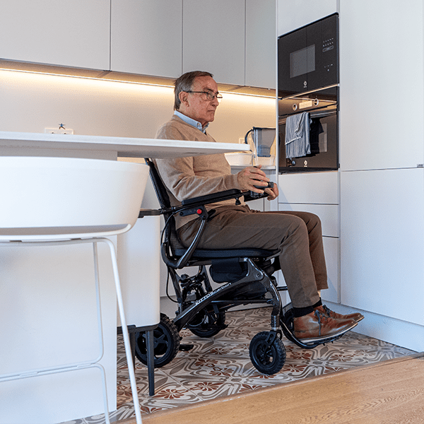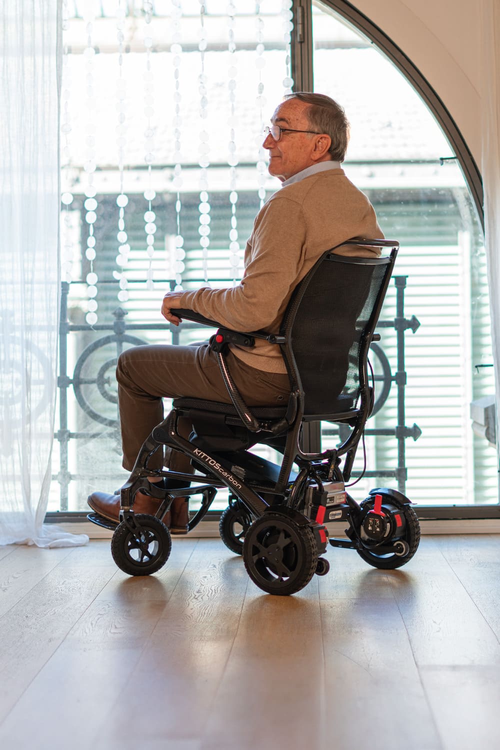 La Kittos Carbon es perfecta para la movilidad en espacios reducidos gracias a sus dimensiones compactas (57 cm de ancho y 72 cm de profundidad) y su reducido radio de giro de 80 cm. Esto garantiza una perfecta circulación en áreas estrechas tanto en interiores como en exteriores.