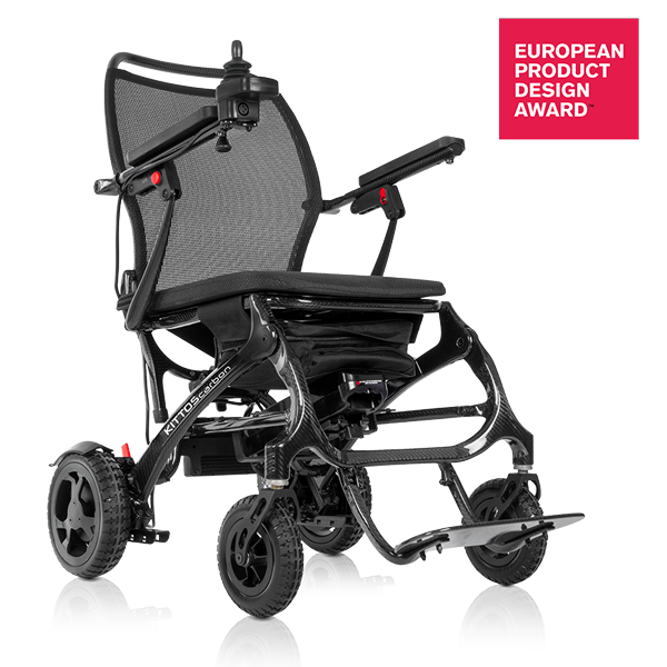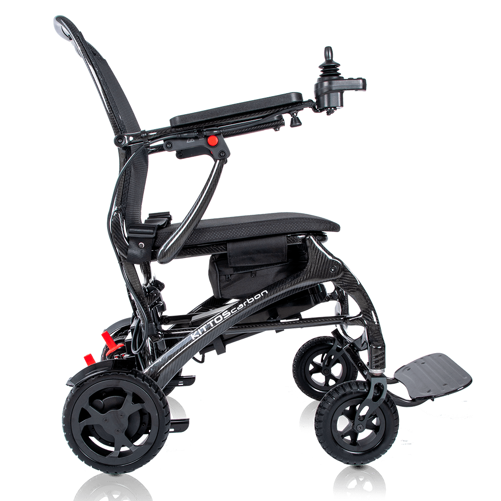 La Kittos Carbon, fabricada en fibra de carbono, sorprende con su peso de tan solo 14,5kg (sin batería). Esta silla, líder en ventas en España, destaca por su diseño compacto, su peso ultraligero y sus acabados de alta calidad.