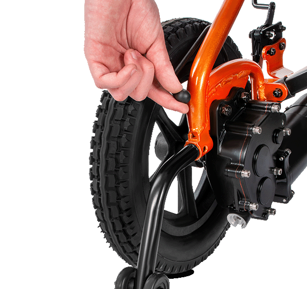 En ambas ruedas, se encuentra un mecanismo de freno manual que permite bloquear las ruedas traseras, asegurando la estabilidad y fijación de la silla.