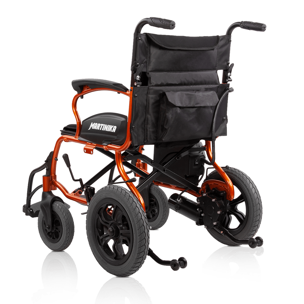 La Martinika se distingue por su chasis excepcionalmente ligero y resistente, con un peso de tan solo 24,60 kg con una batería. Su estrecho ancho total de 59 cm (Martinika Evo) garantiza un fácil paso por puertas y espacios reducidos, lo que la convierte en una silla de ruedas altamente maniobrable. Además, soporta hasta 120 kg.
