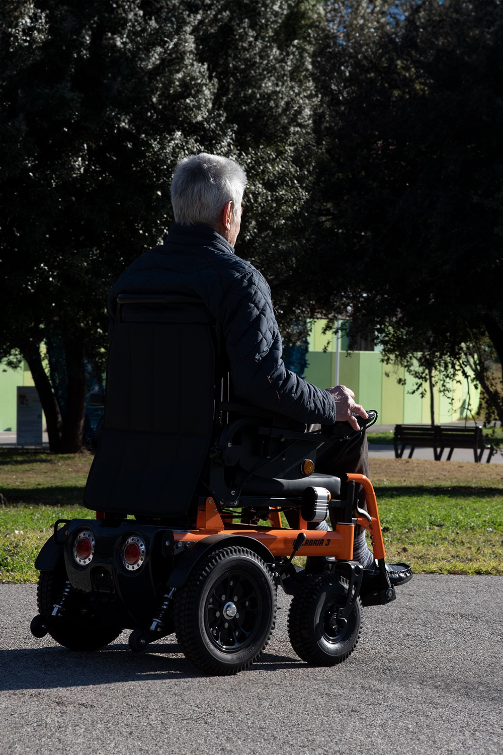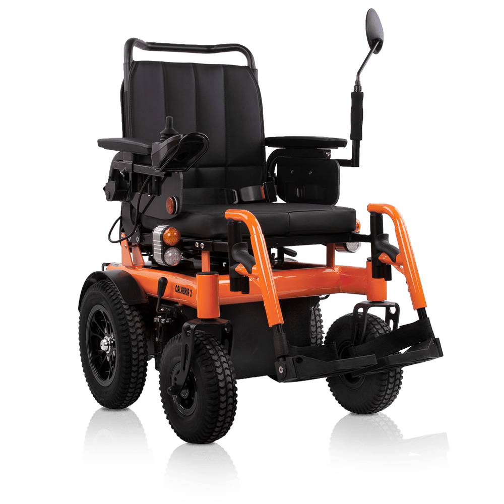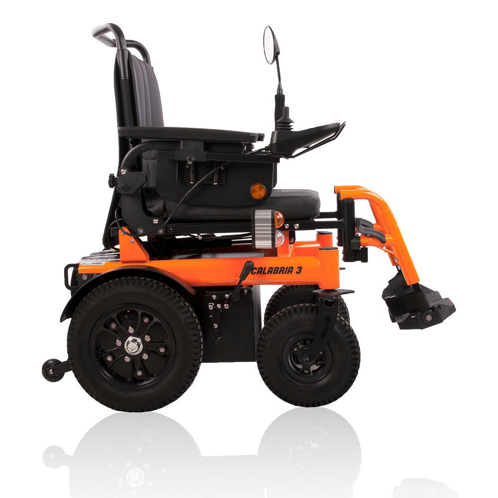 La silla de ruedas eléctrica Calabria 3 es fácilmente reconocible por su diseño compacto, moderno y ergonómico. Una de sus características más destacadas son las grandes ruedas de Ø35 cm con un ancho de 8 cm. Esta silla cuenta con un sistema de reclinación manual, reposapiés y reposabrazos ajustables en altura, lo que añade versatilidad y comodidad para el usuario. Además, ofrece un respaldo confort que la convierte en una silla de ruedas eléctrica muy cómoda.