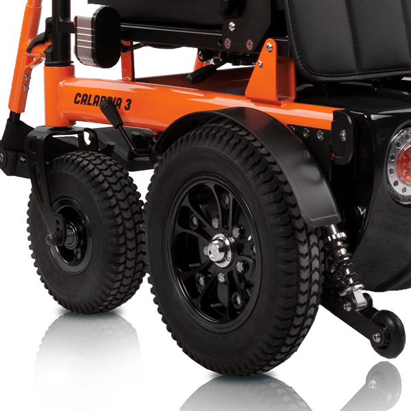 Además de sus ruedas de gran tamaño, la Calabria 3 cuenta con un sistema de amortiguación que contribuye aún más a mejorar la comodidad durante la conducción.