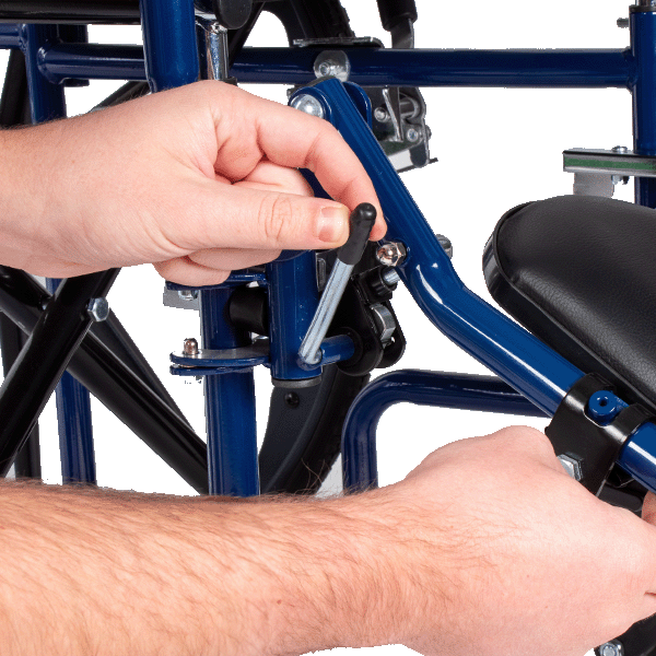 Una característica destacada de esta silla es su sistema de respaldo reclinable hasta 180º, diseñado para adaptarse a las necesidades del usuario. La inclinación del respaldo se ajusta fácilmente mediante las manetas ubicadas en los puños, permitiendo una personalización óptima de la posición para mayor comodidad.