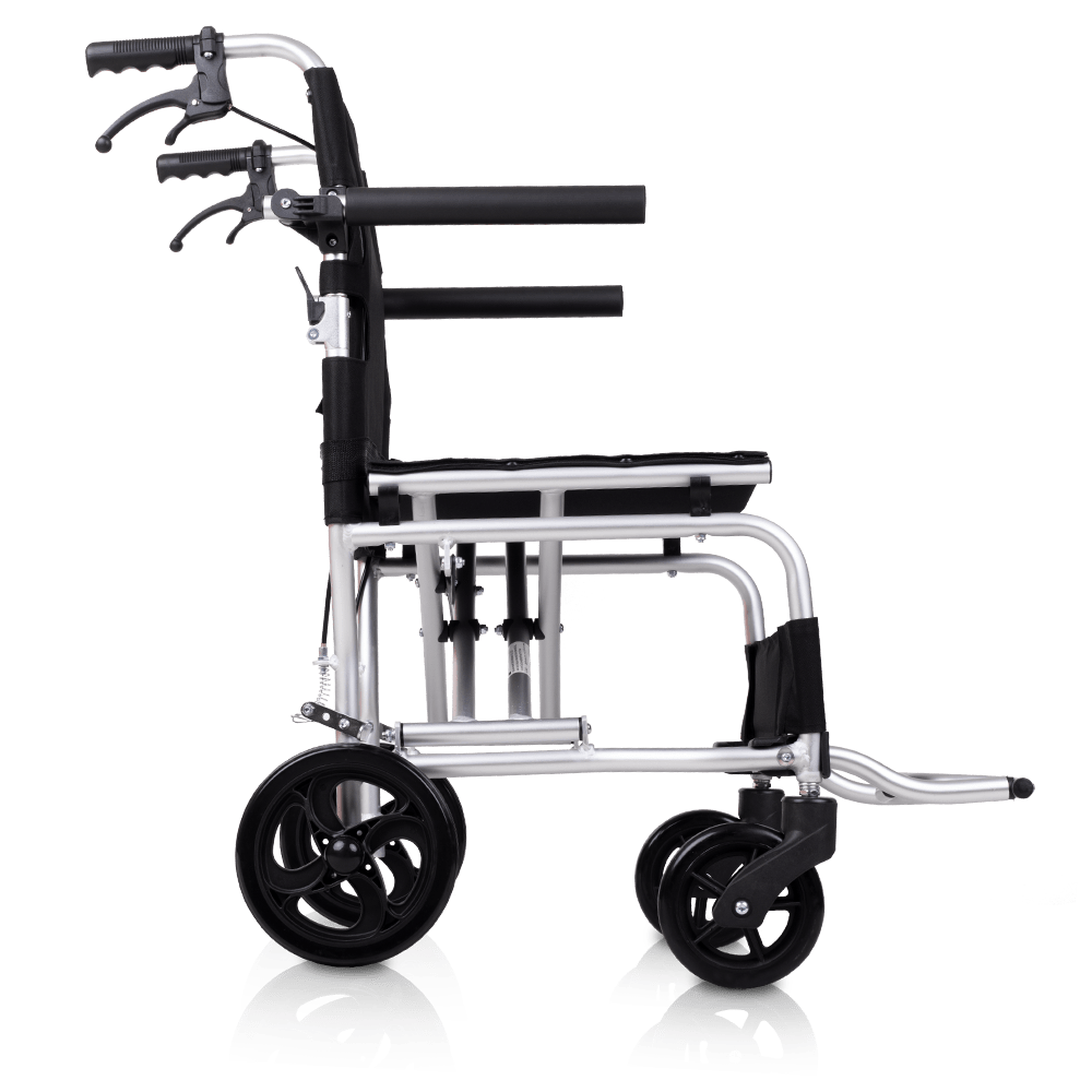 Es una silla de ruedas de transferencia especialmente diseñada para uso en interiores, gracias a sus medidas ultra compactas. Con un ancho total de 47,5 cm en la talla de 40 cm y 51,5 cm en la talla de 44 cm, es perfecta para transportarla cómodamente a cualquier lugar.