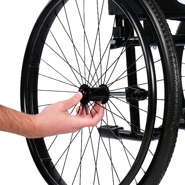Tanto en rueda pequeña como en rueda grande, viene incorporado un sistema de extracción rápida, conocido como Quick Release.