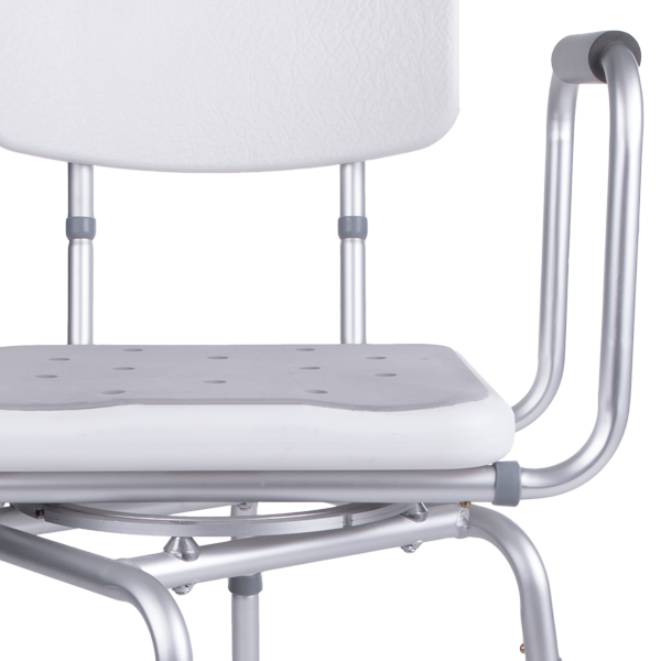 A cadeira de duche está equipada com pés antiderrapantes que proporcionam estabilidade e segurança ao utilizador.