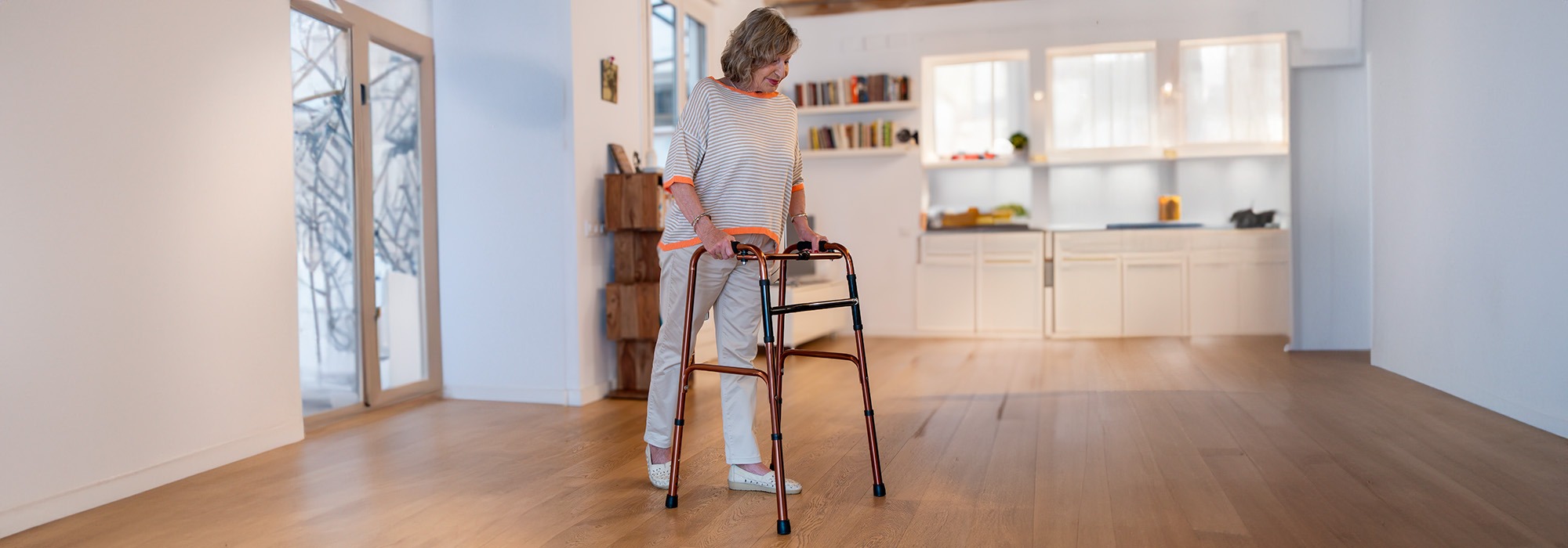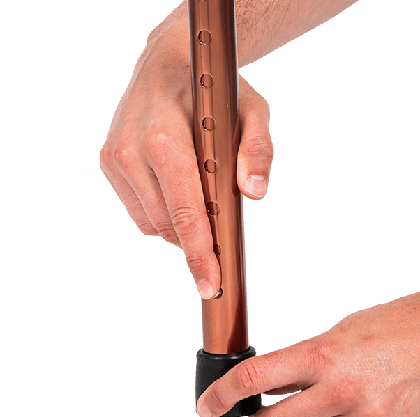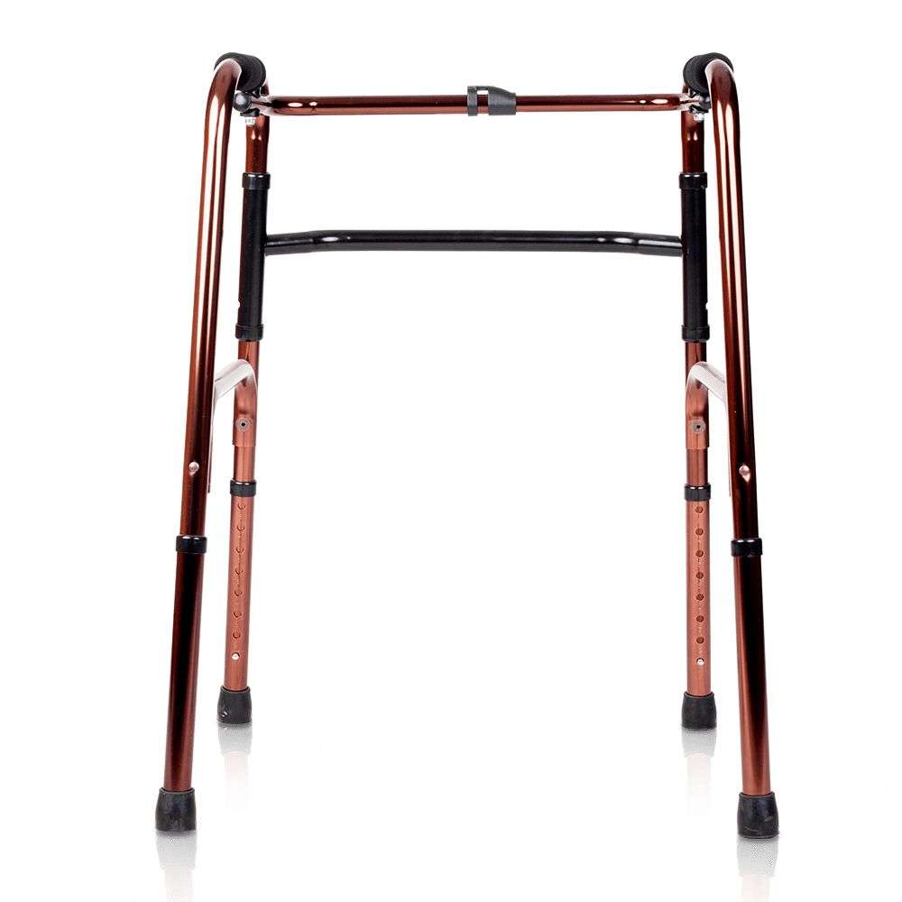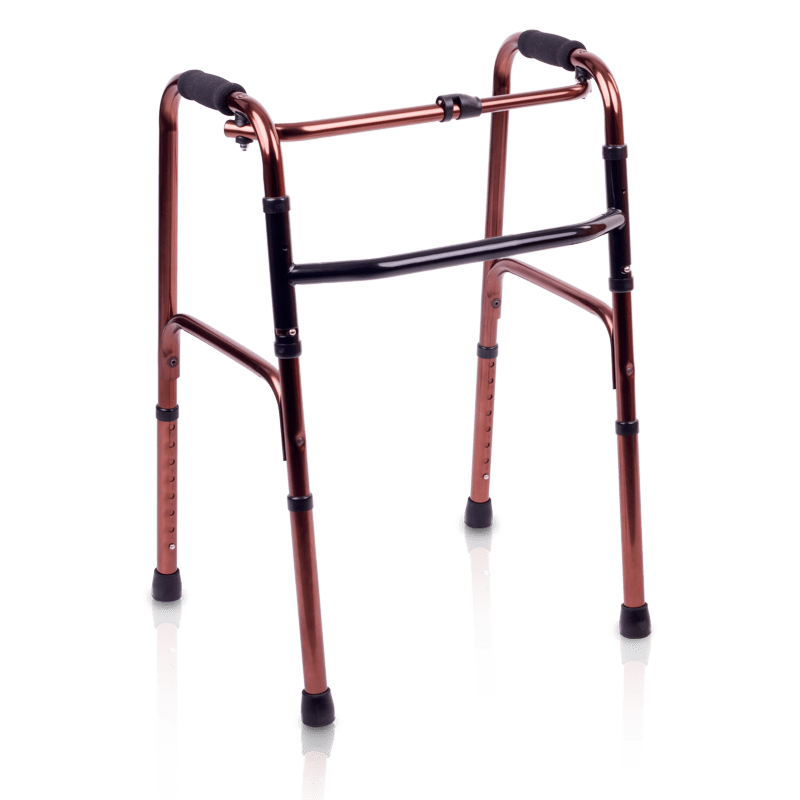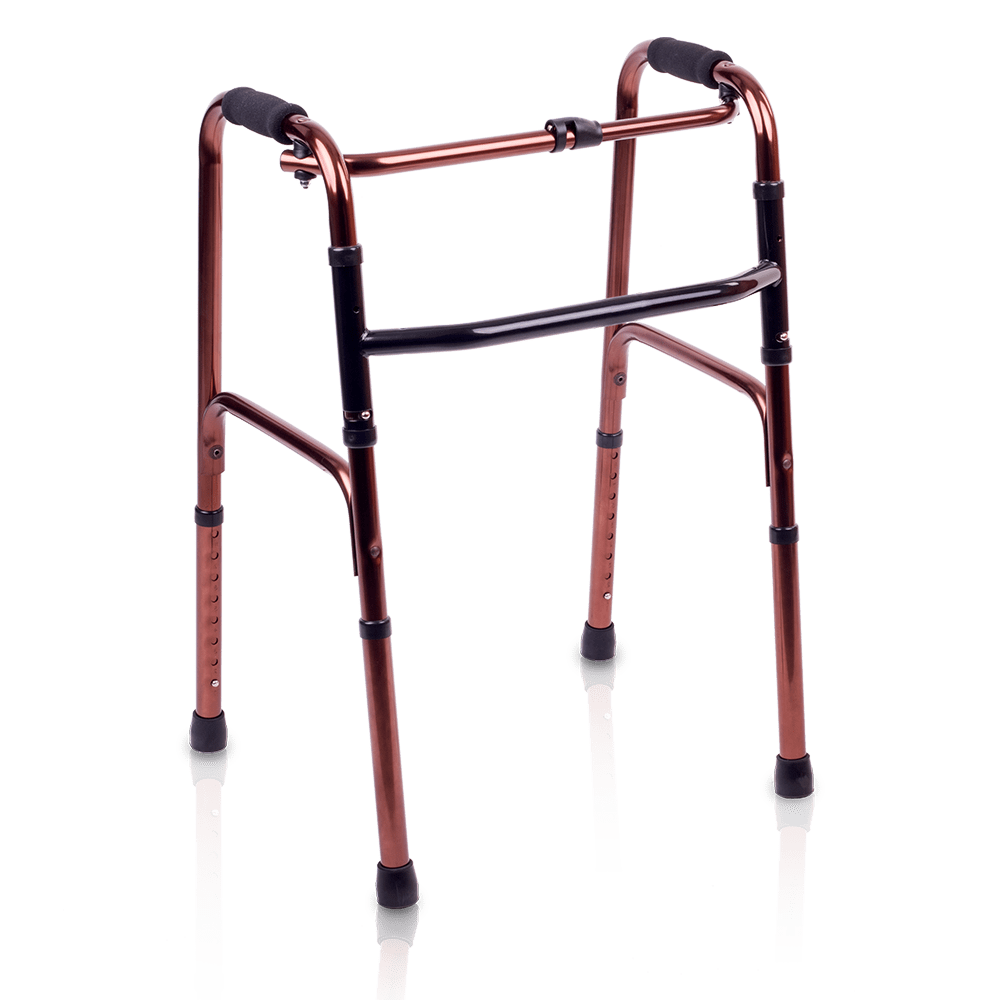 Disponível numa elegante cor de cobre e com pegas revestidas a neopreno para maior conforto. Com um peso total de 2,20 kg, este andarilho é capaz de suportar até 100 kg de peso máximo.